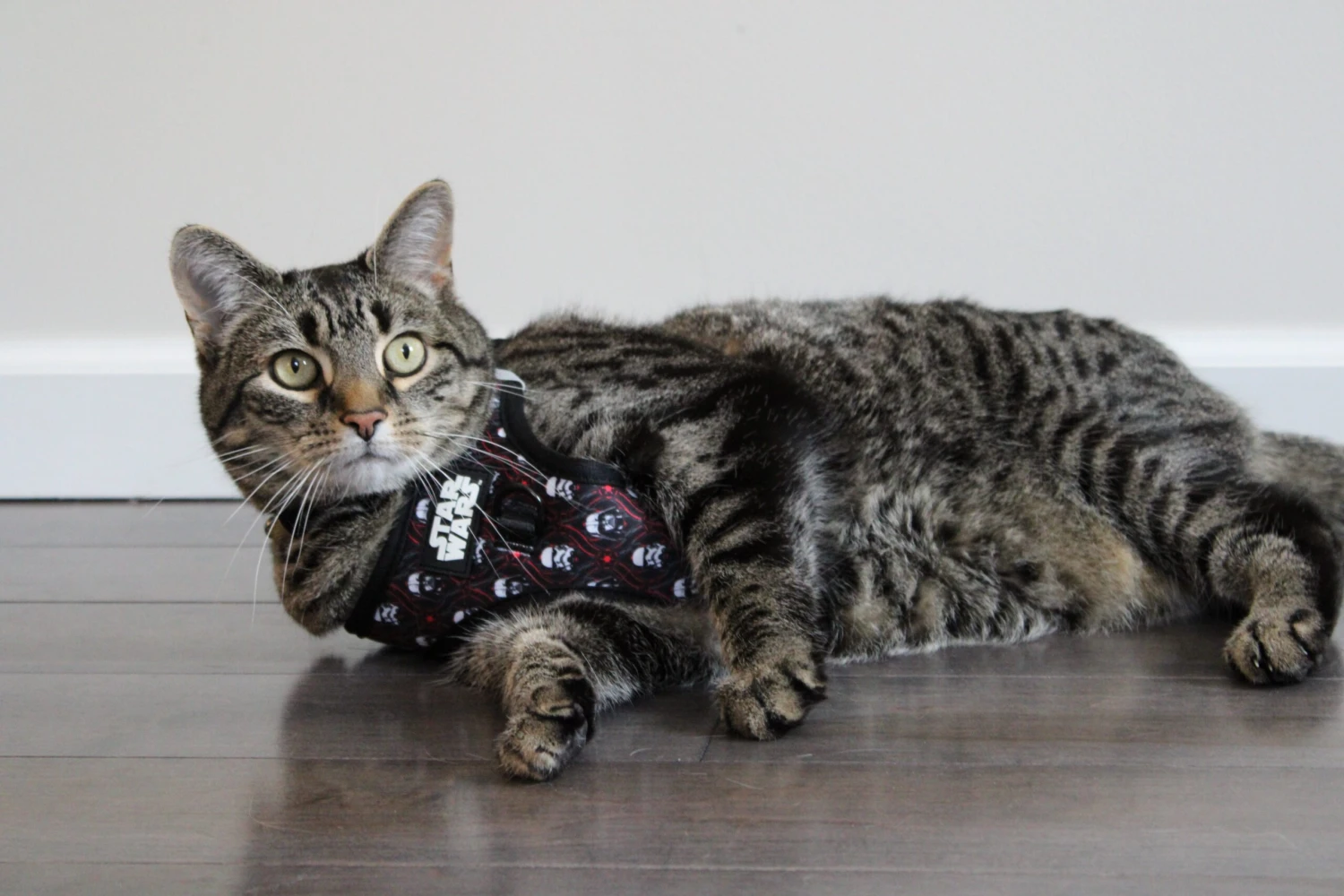Celebrate the dark side with this strong red, black, and white pattern and show your cat is not to be messed with!