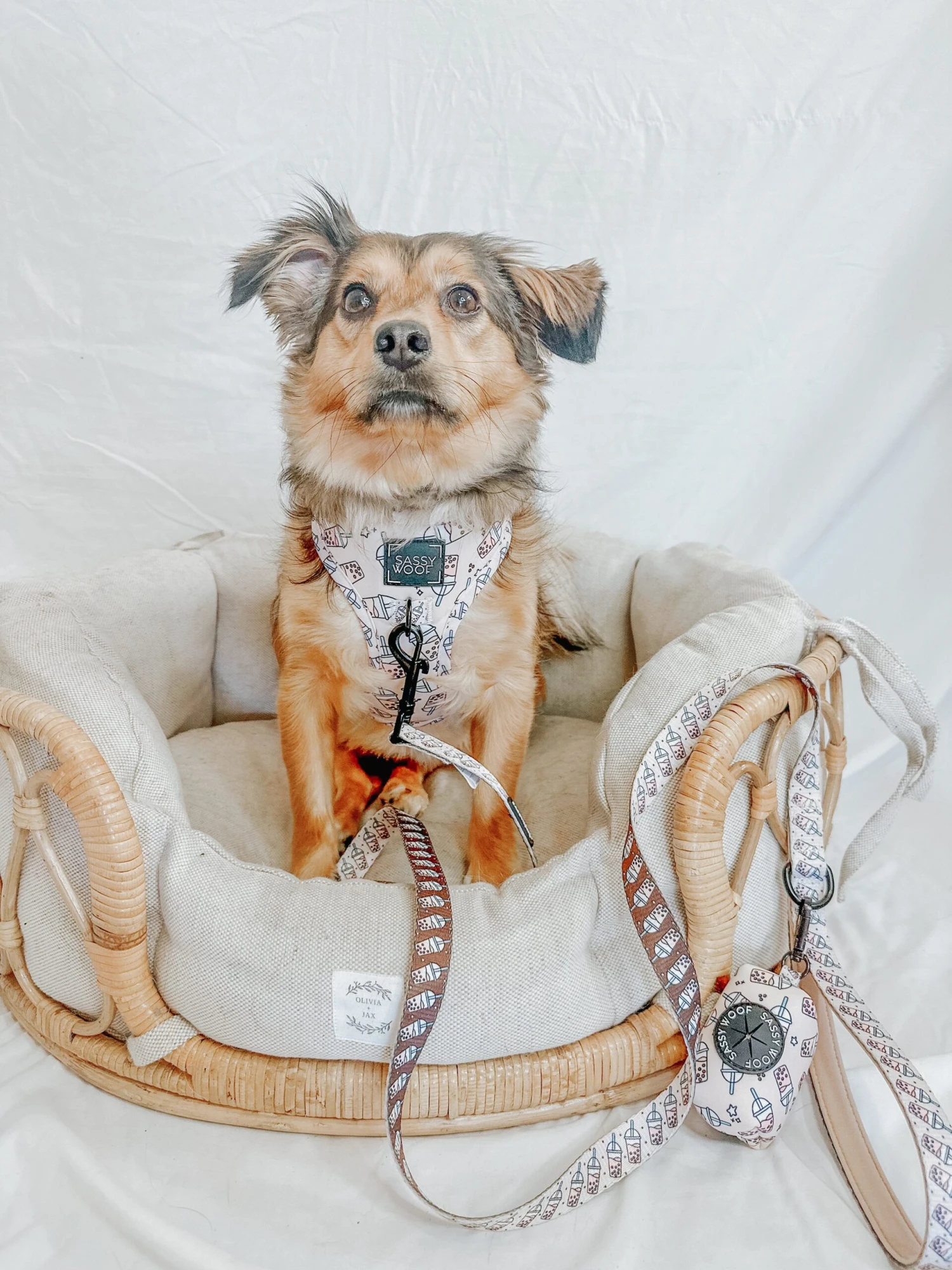 - Pair this harness with our matching collar, leash, and waste bag holder!
