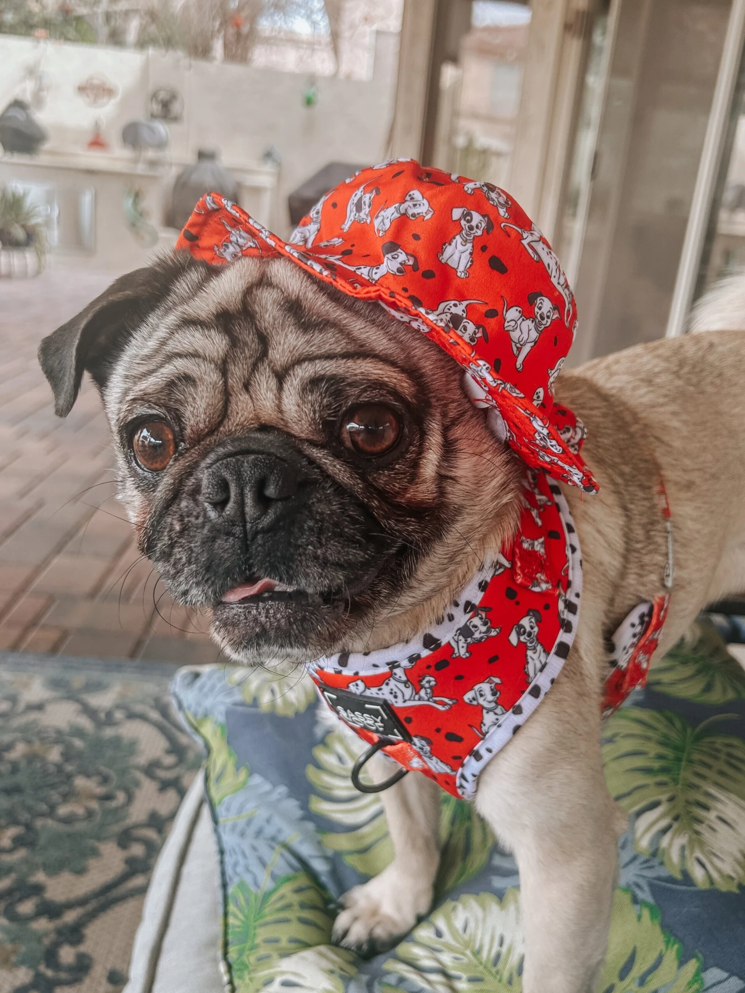 - Pair this bucket hat with the matching adjustable harness, leash, collar, waste bag holder and sailor bow