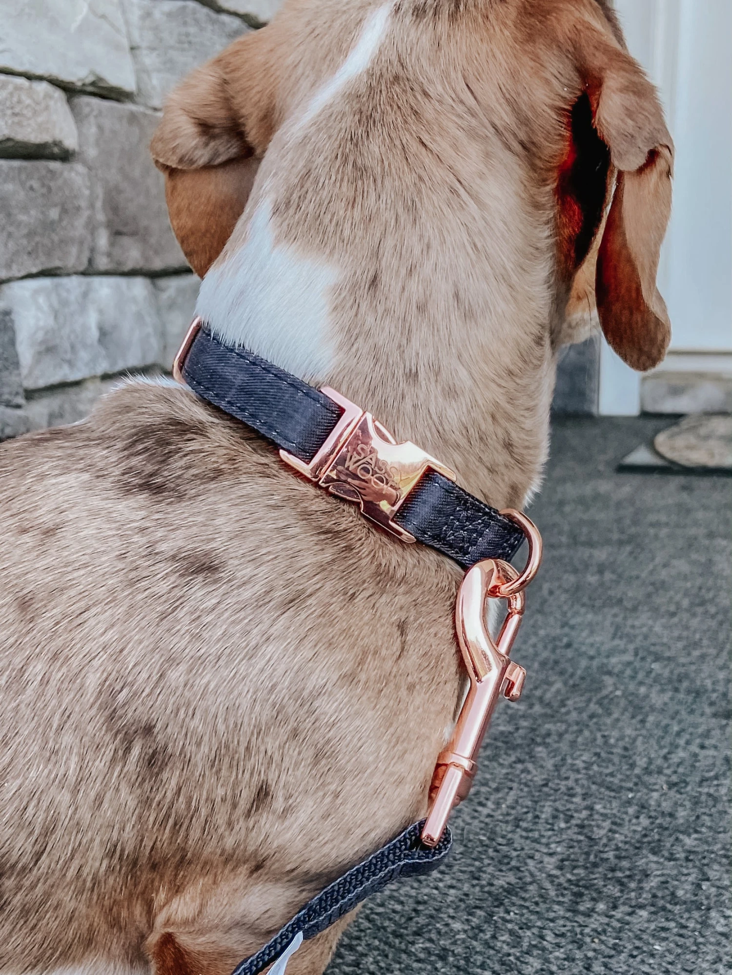 This collection can truly be anything that you would like it to be! Pair this collar with a colorful rope leash that really pops, or compliment it with a stunning black leash and rose gold accessories. You can take any look and make it yours with this versatile neutral.Â