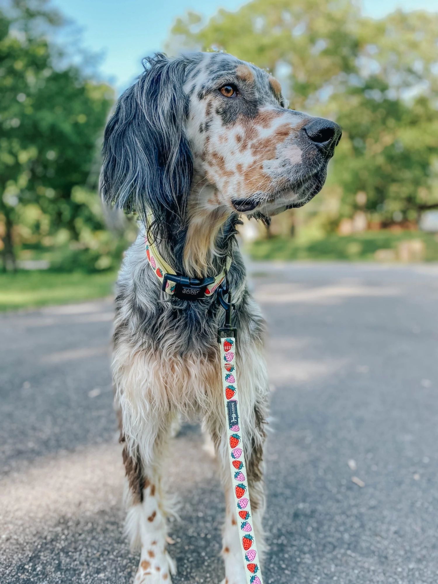 Complete the set with our matching adjustable harness, leash, waste bag holder, and bowtie