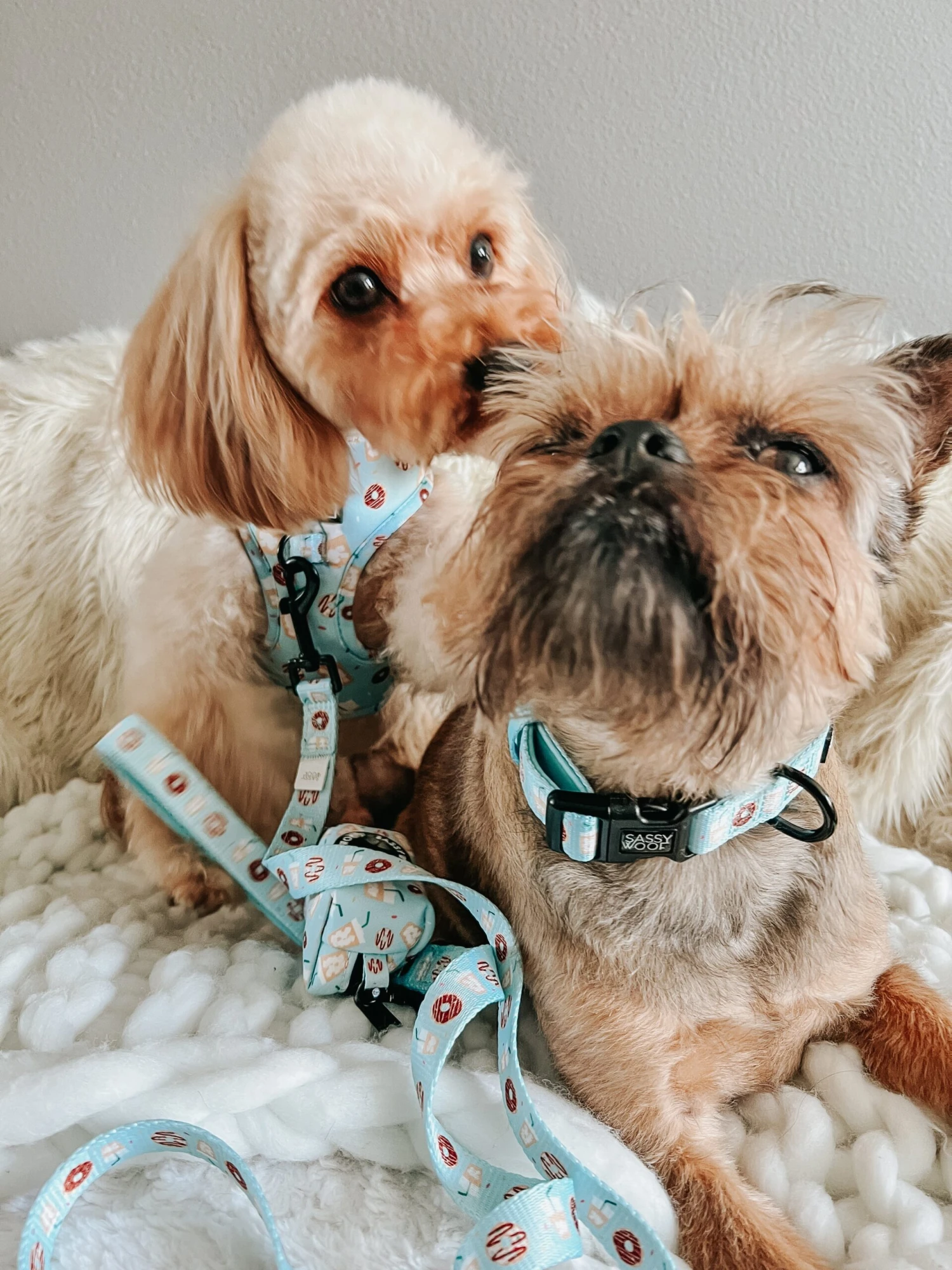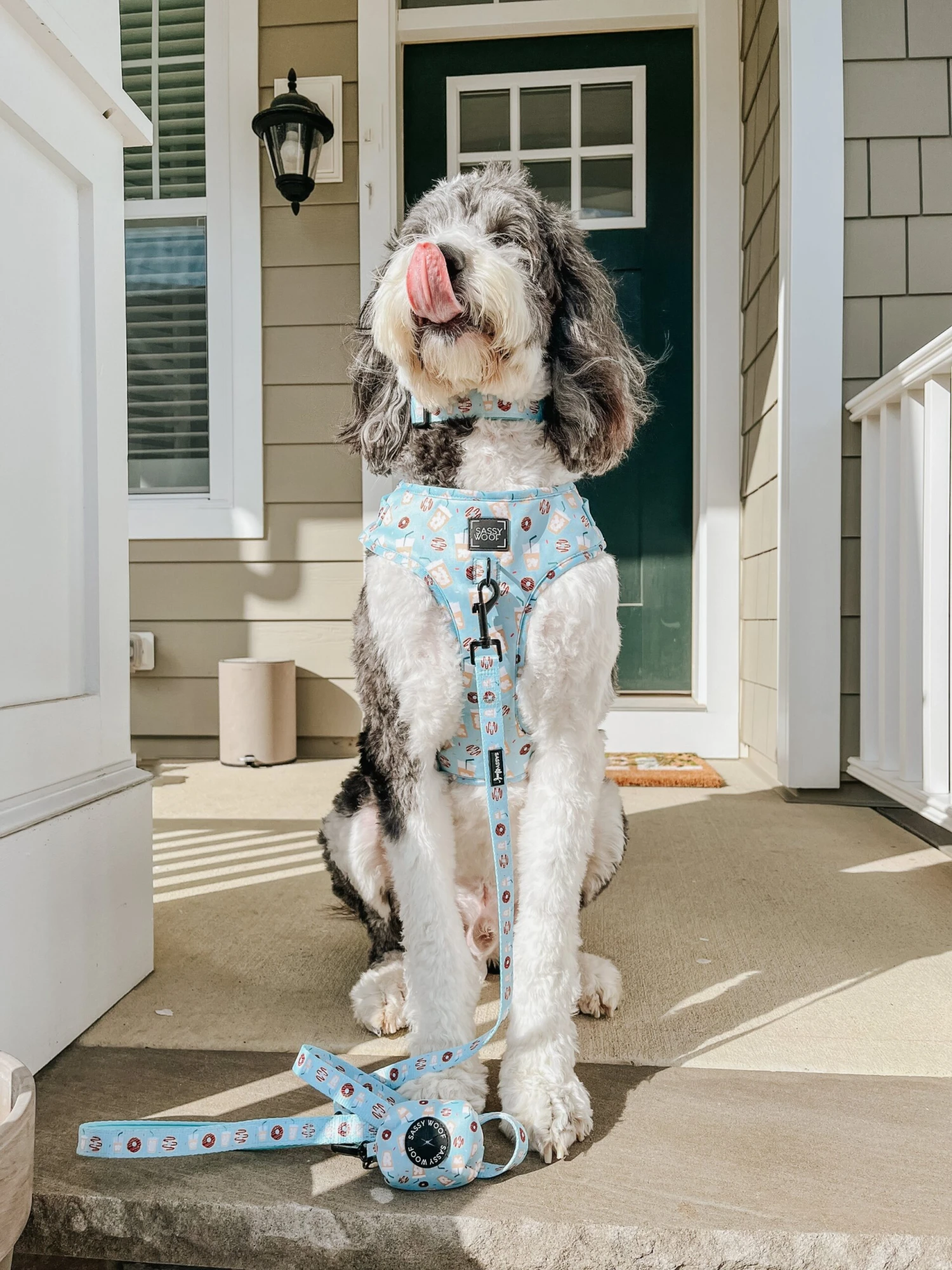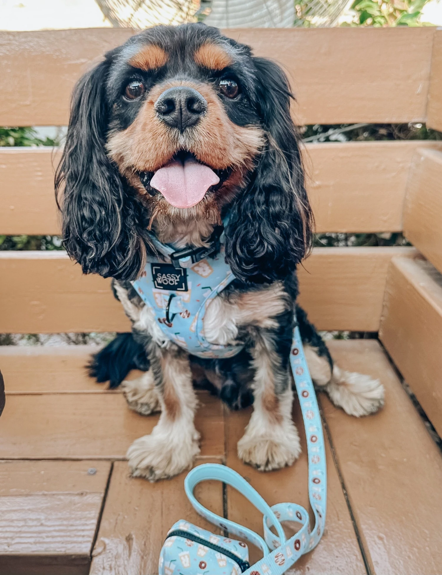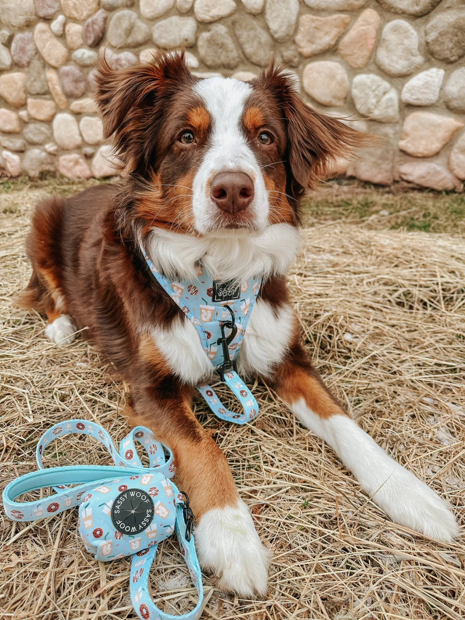 - Complete the set with our matching adjustable harness, leash, waste bag holder, and bowtie