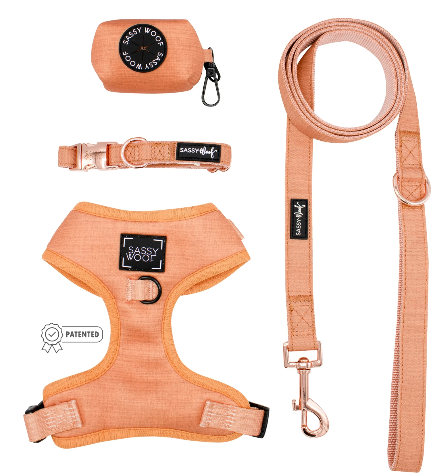 Enjoy our ‘Apple Cider’ bundle with a warm cup of cider! This natural colored harness is great for all the classy pups!Ā