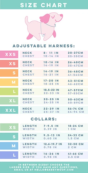 The harness and collar of this set qualify for our Puppy Growth Pawtection Plan (PGPP), which will let you replace either item for a larger one within 9 months because of natural growth! You can choose a plan for either or both items but please note that the PGPP must be added at the time of purchase. Find pricing information and other details here.