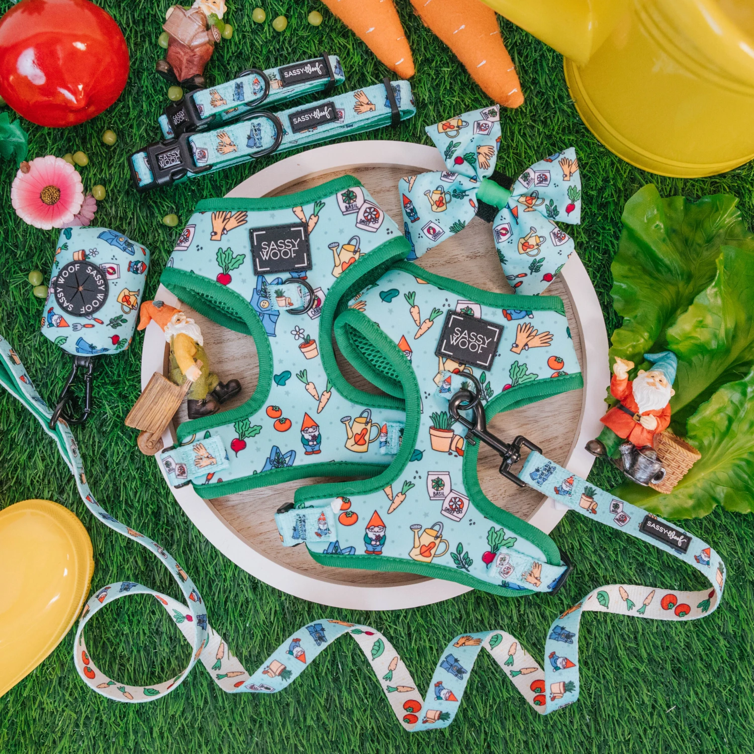 Your pup will be cute as can be chillin with their gnomies in this collection!