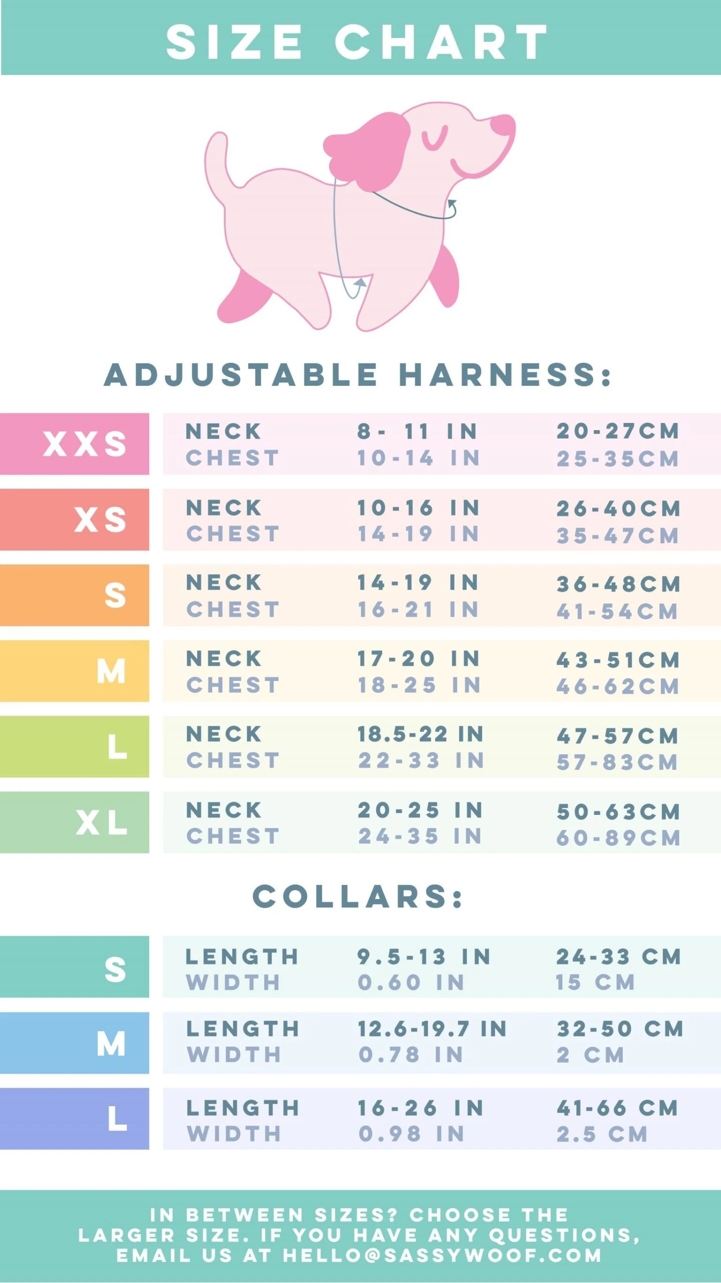 The harness and collar of this set qualify for our Puppy Growth Pawtection Plan (PGPP), which will let you replace either item for a larger one within 9 months because of natural growth! You can choose a plan for either or both items but please note that the PGPP must be added at the time of purchase. Find pricing information and other details here.