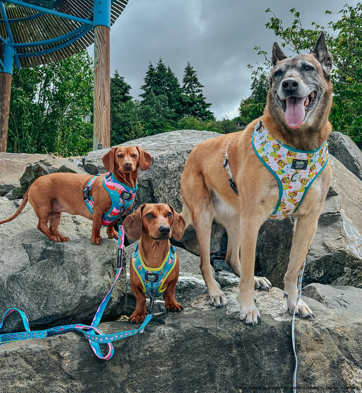 The undersea adventures of SpongeBob and his quirky friends come to life for your furry companion! This vibrant collection features iconic characters from Bikini Bottom—SpongeBob, Patrick, Squidward, and more—in a playful design that will add a splash of oceanic fun to your dog’s everyday gear.