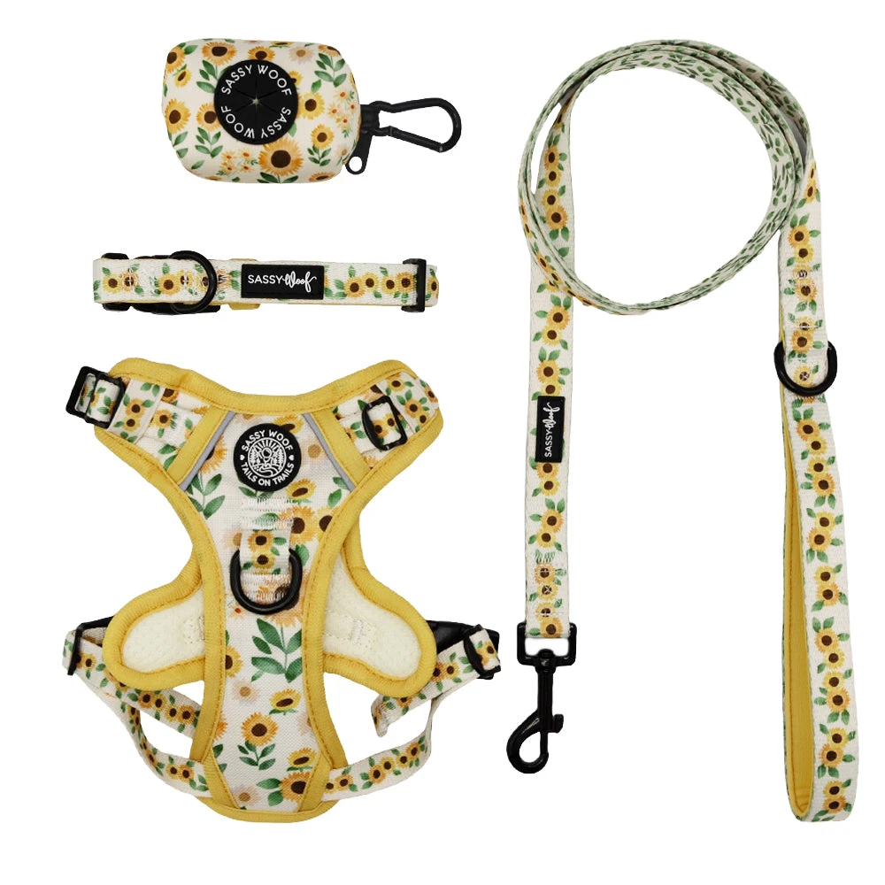 Brighten up your dog’s outdoor adventures! Designed for sunny days and fun in the great outdoors, this vibrant collection features cheerful sunflower patterns that bring a splash of warmth and joy to every outing.Â
