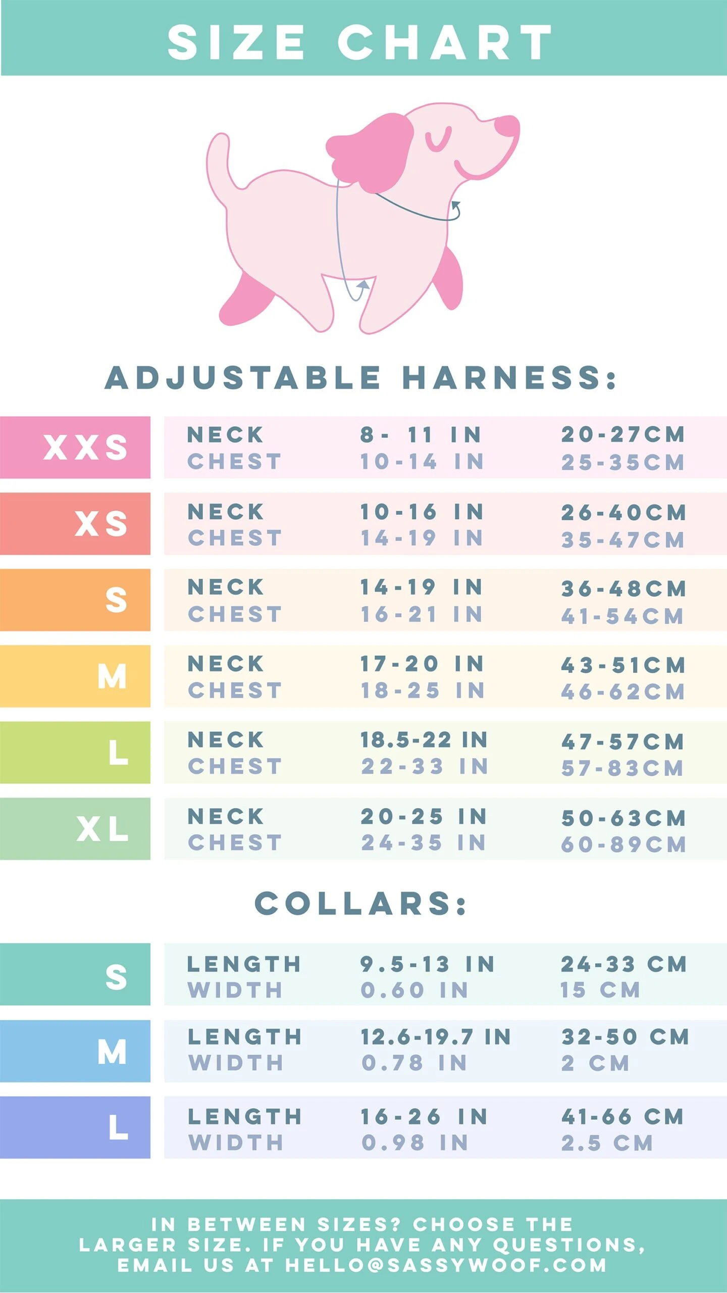 The harness and collar of this set qualify for our Puppy Growth Pawtection Plan (PGPP), which will let you replace either item for a larger one within 9 months because of natural growth! You can choose a plan for either or both items but please note that the PGPP must be added at the time of purchase. Find pricing information and other details here.