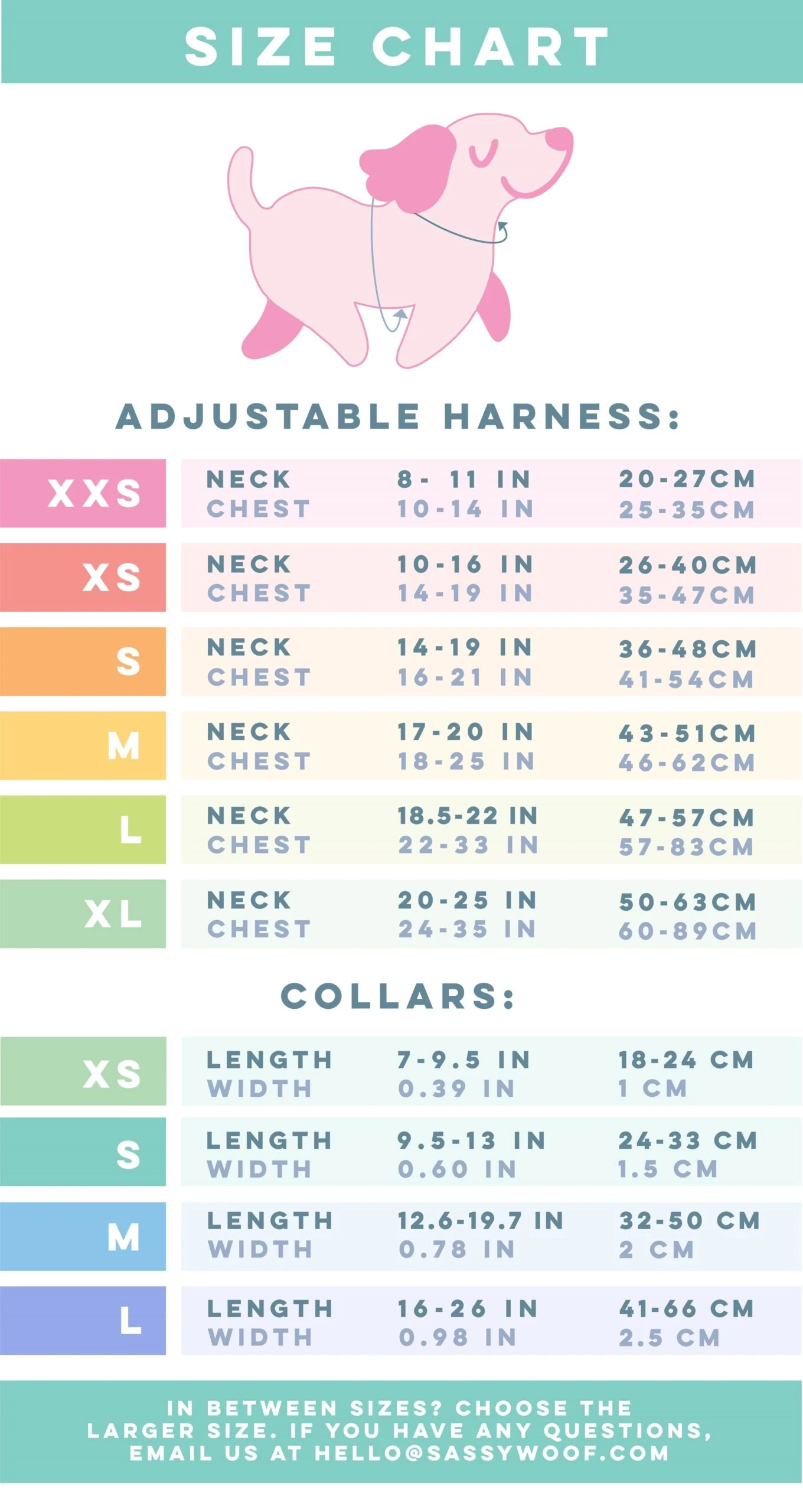 The harness and collar of this set qualify for our Puppy Growth Pawtection Plan (PGPP), which will let you replace either item for a larger one within 9 months because of natural growth! You can choose a plan for either or both items but please note that the PGPP must be added at the time of purchase. Find pricing information and other details here.