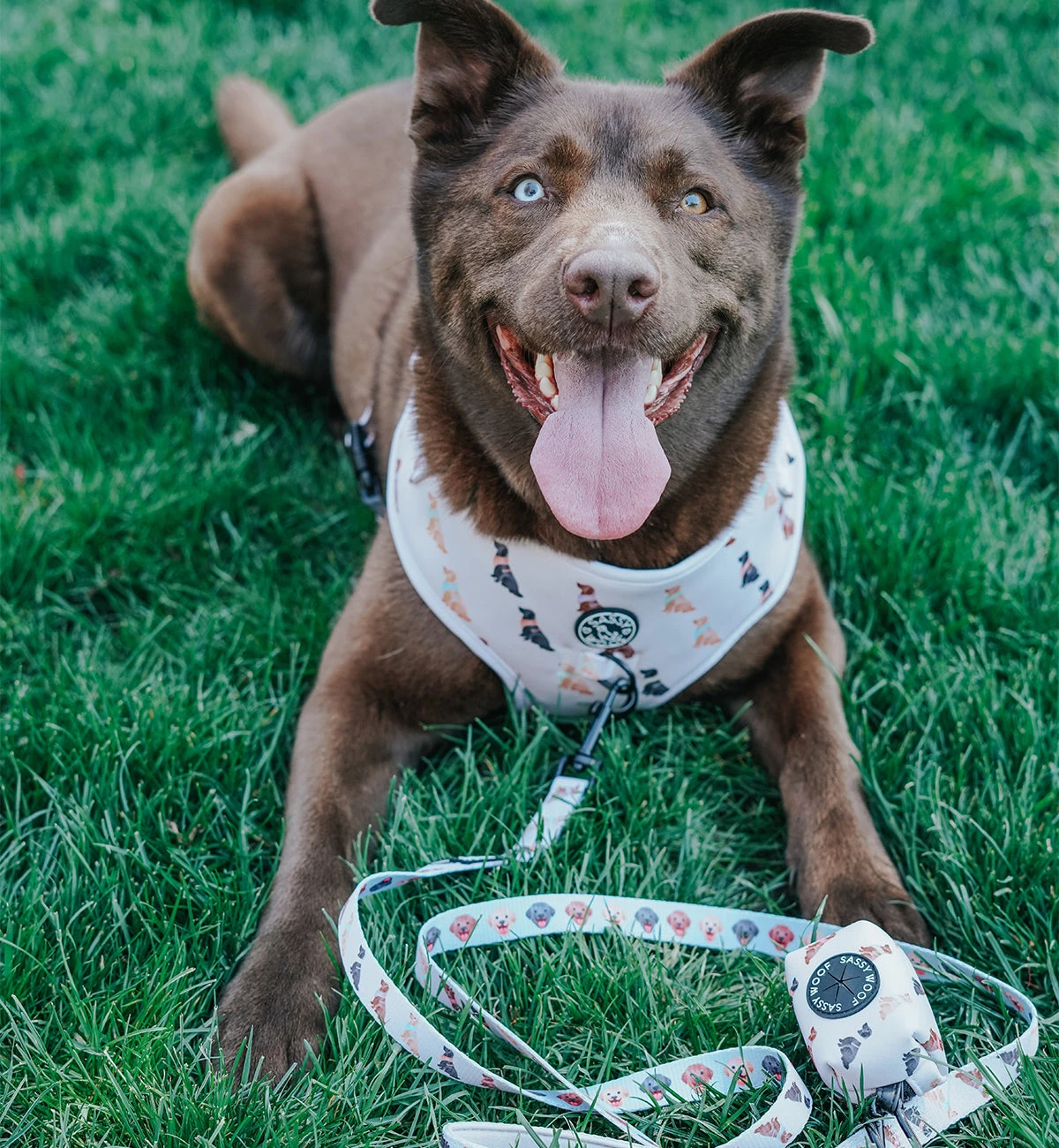 - Complete the set with our matching adjustable harness, collar, waste bag holder, and sailor bow!