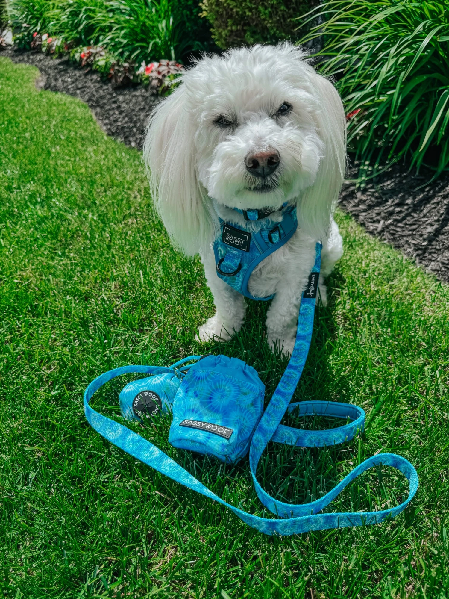 - Complete the set with our matching step-in harness, collar, waste bag holder, & treat pouch