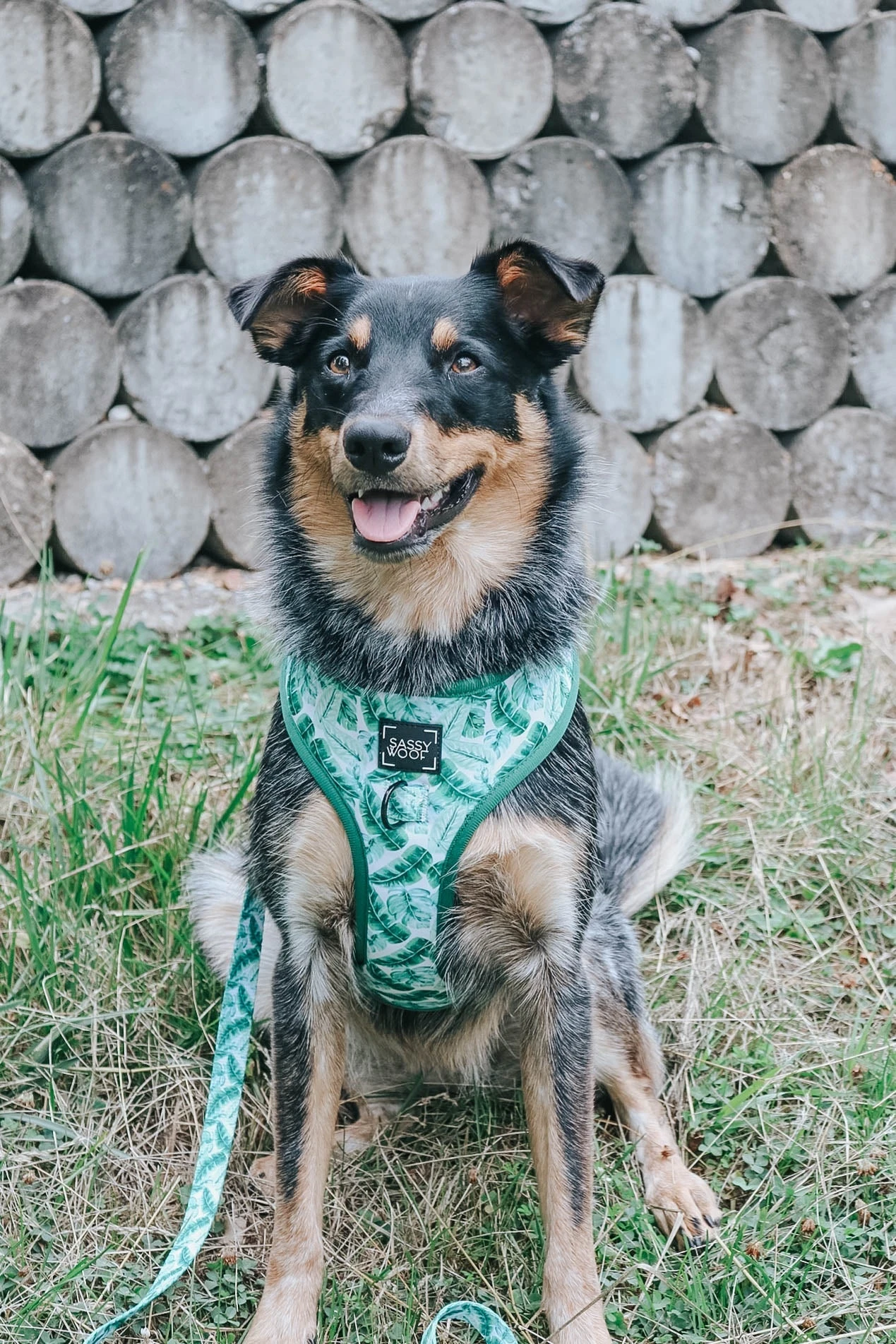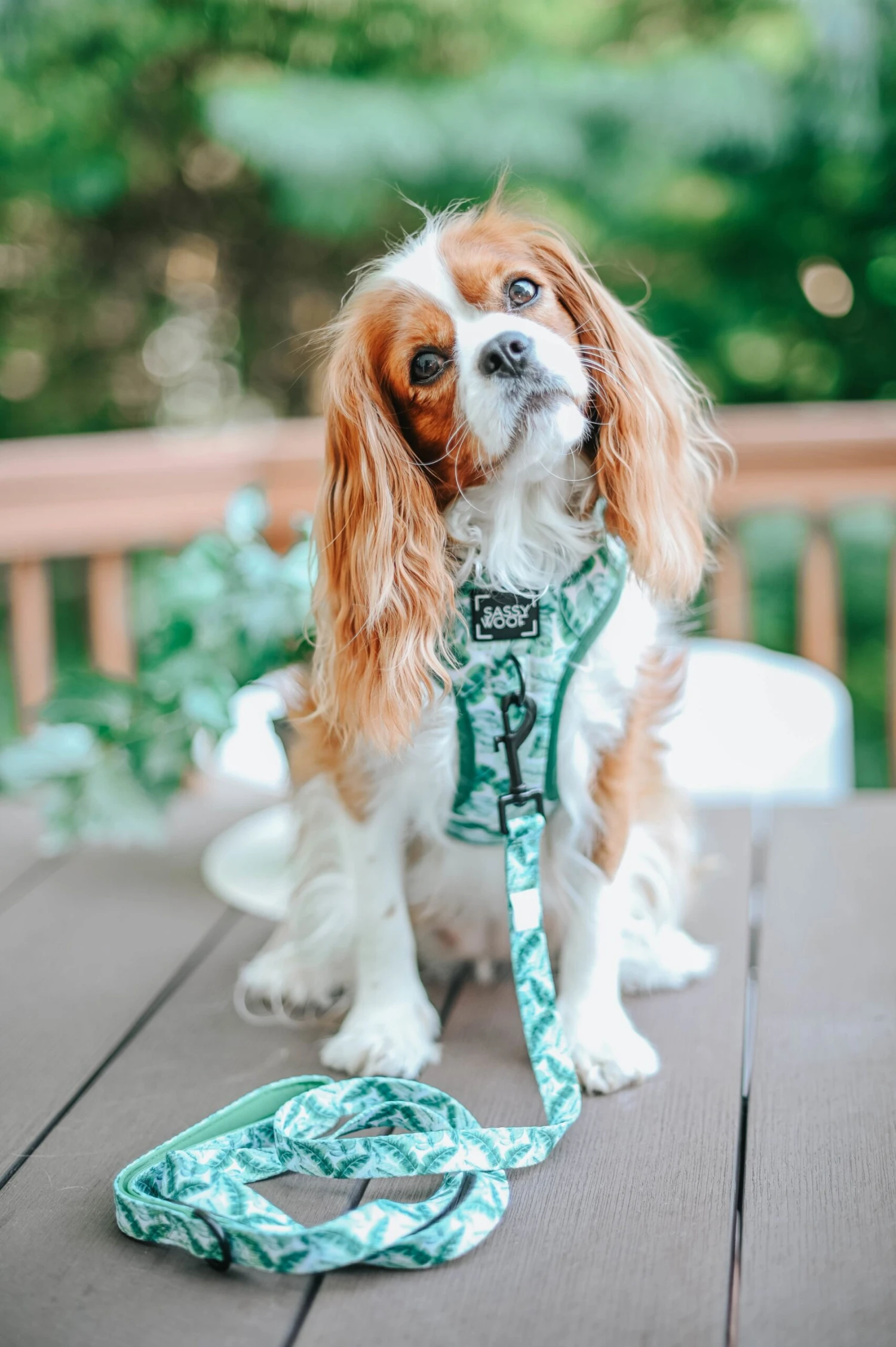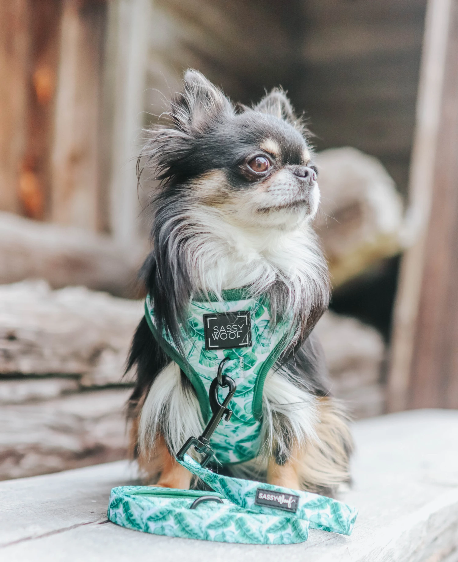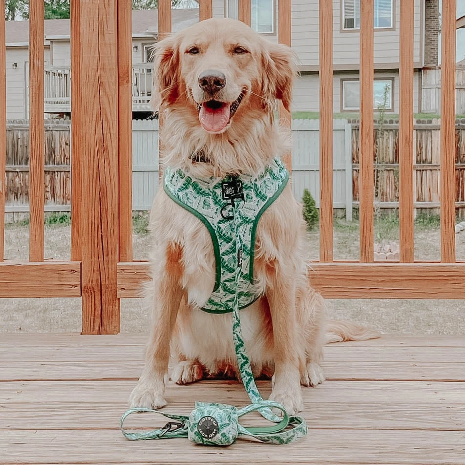 - Complete the set with our matching adjustable harness, collar, waste bag holder, and bowtie!