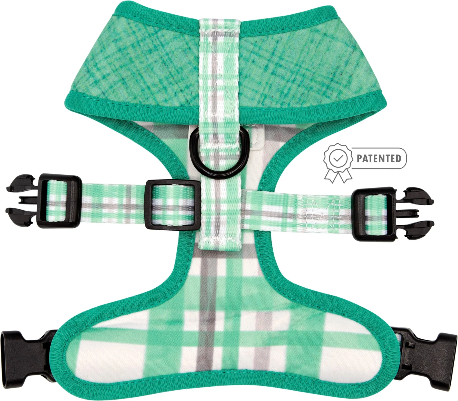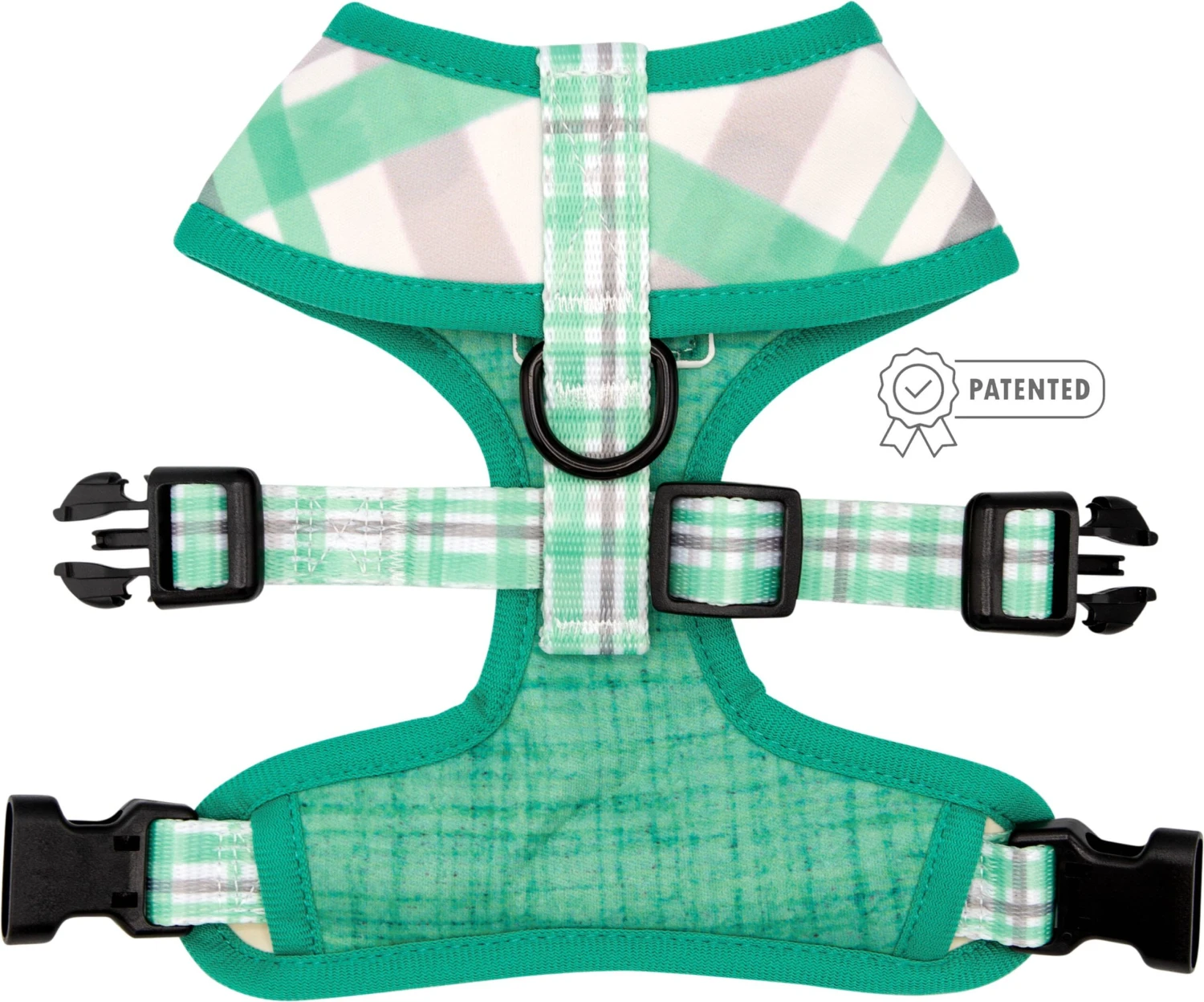 - Two designs in one harness: both sides feature a custom printed neoprene fabric