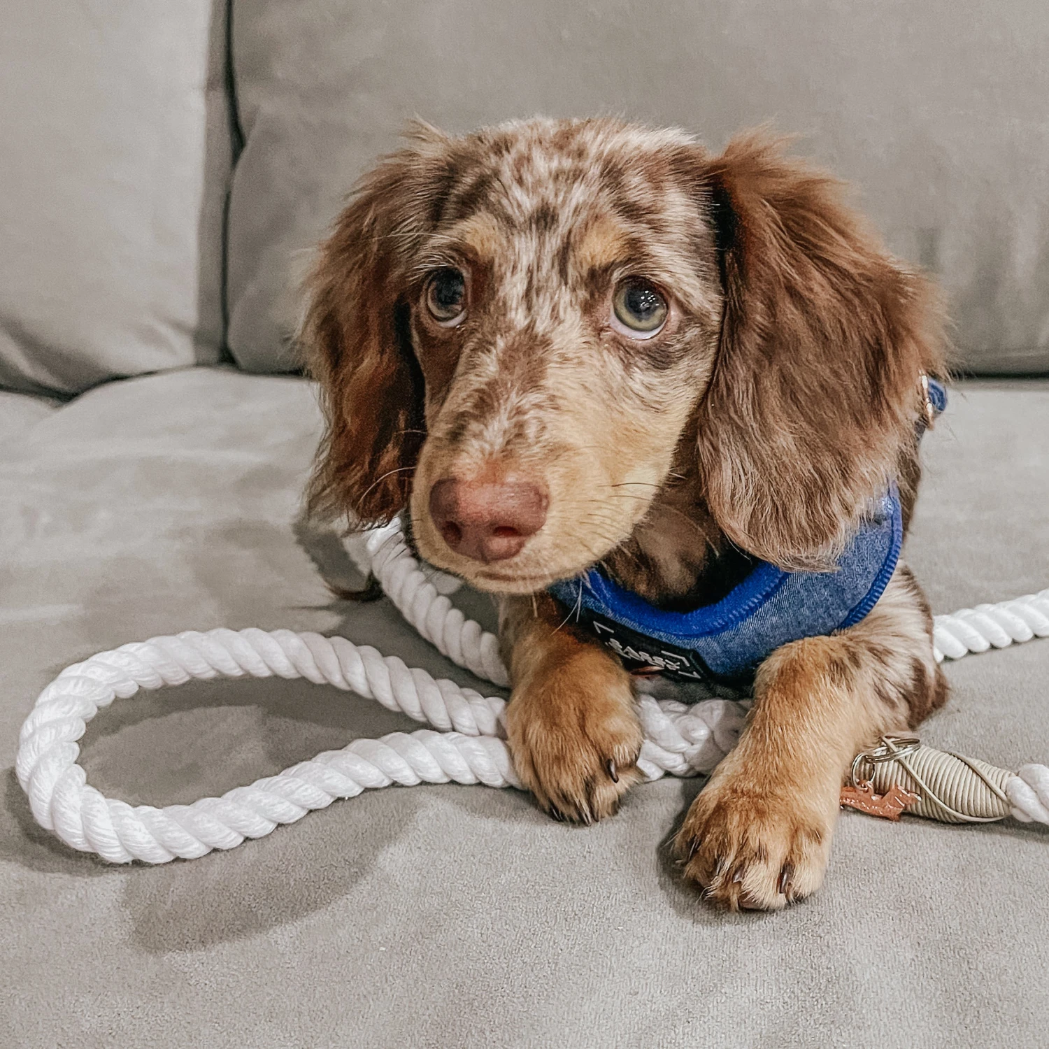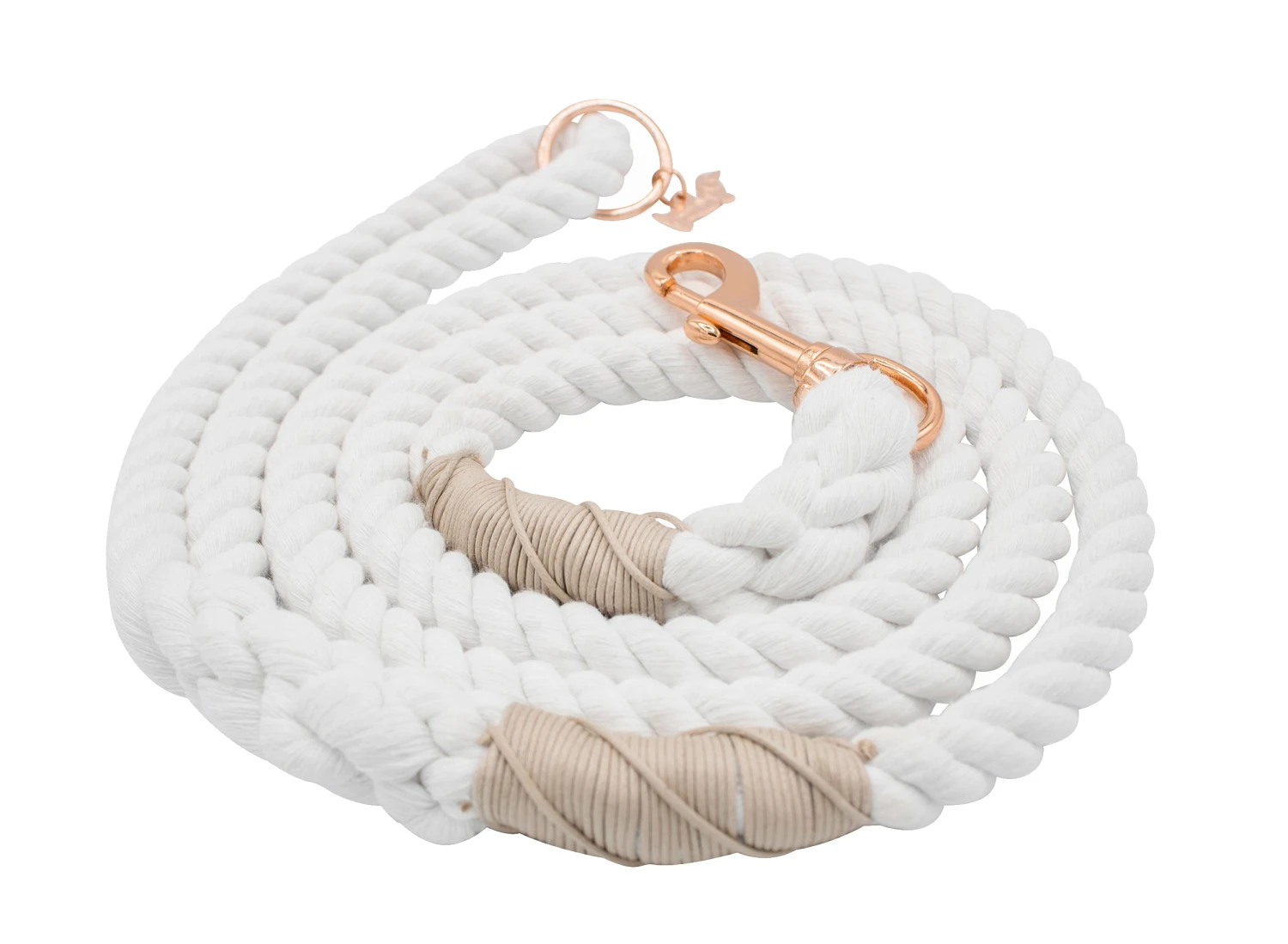 The rope leash that goes with everything! If you love a good natural look, this minimalistic leash is for you. Pair this with a bright accessory or keep the neutral look with a matching collection.