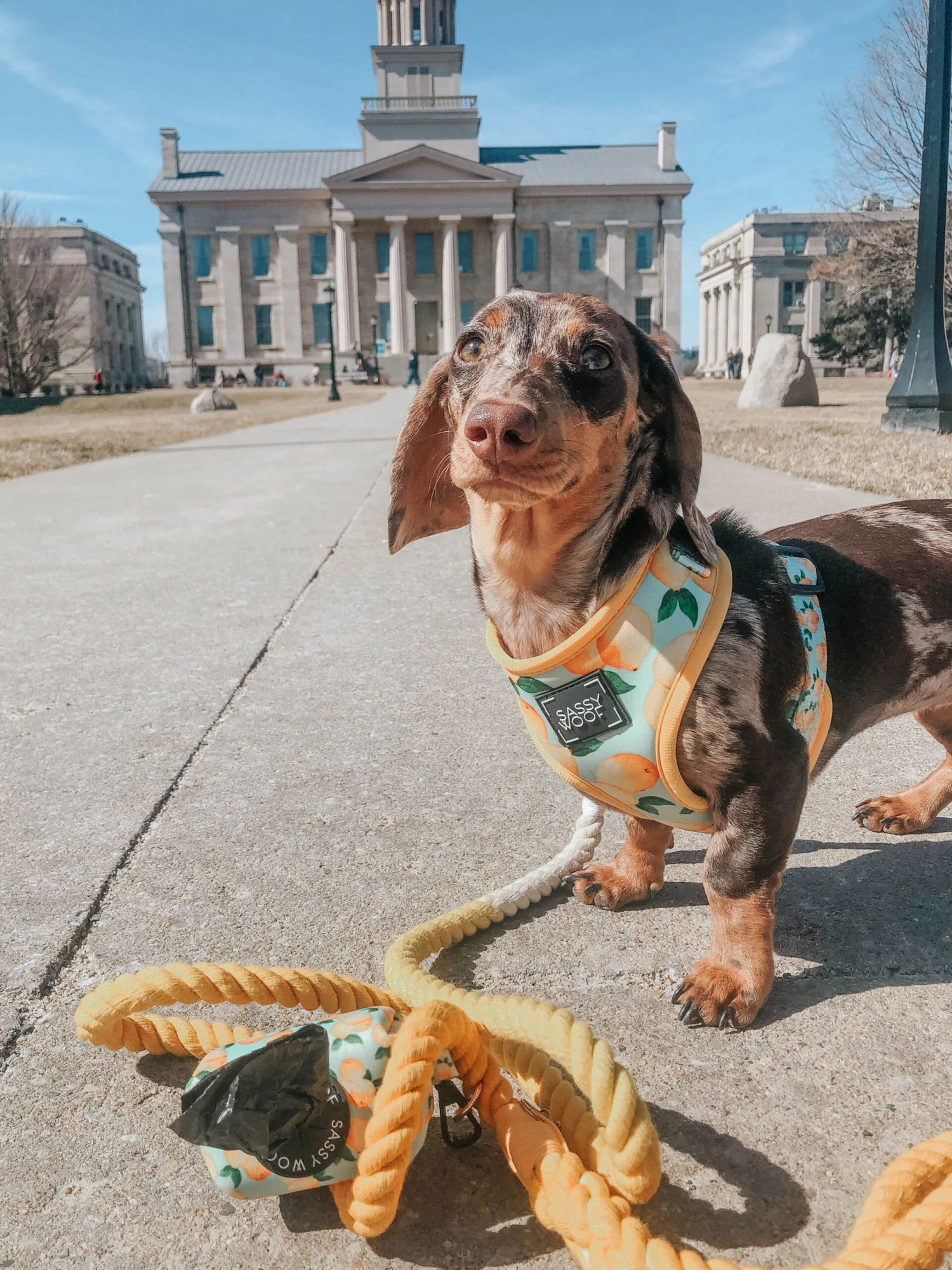 - Beautiful luxe rose gold hardware with a matching rose gold dog charm and accessory ring