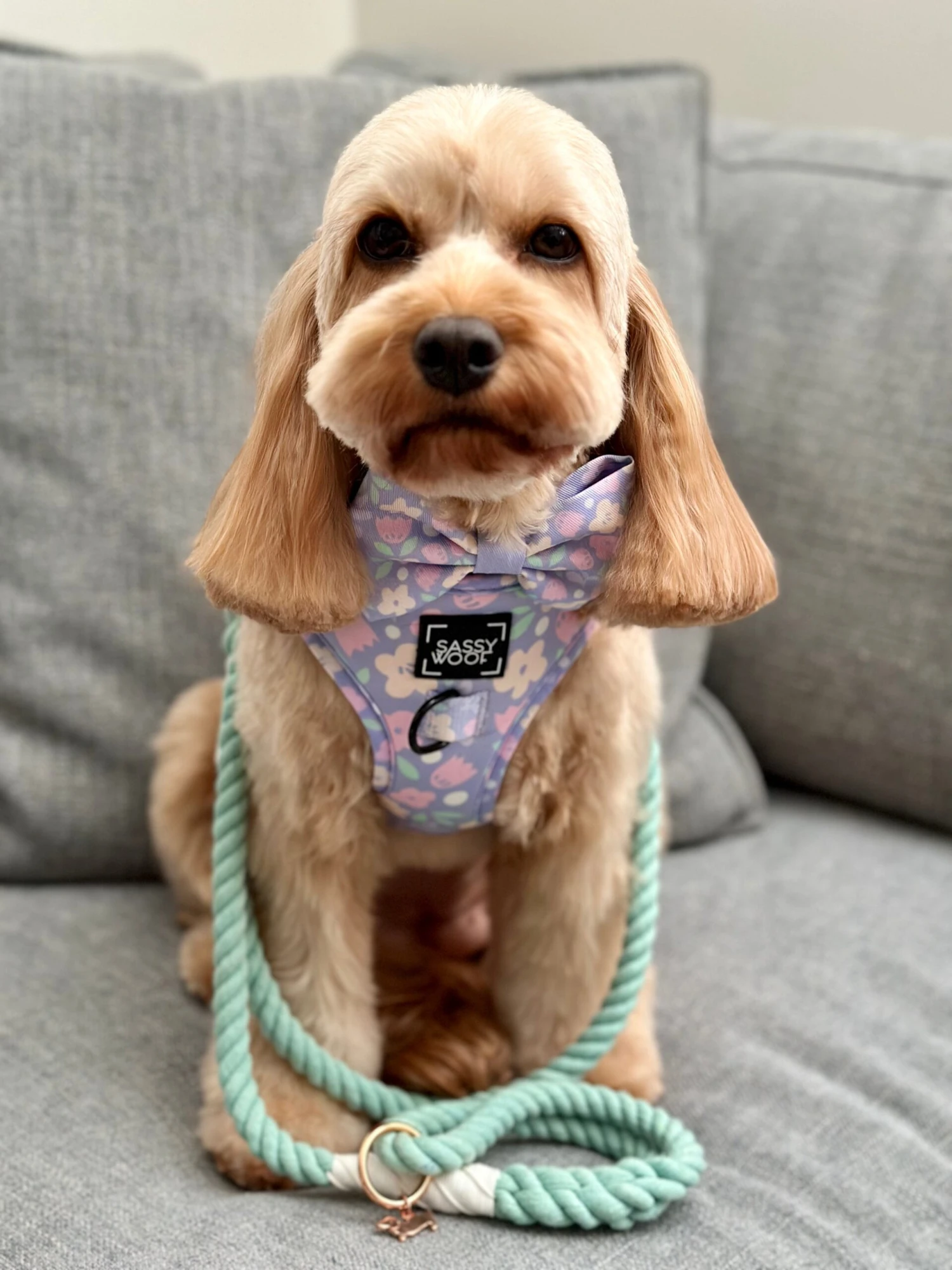All eyes are on this beautiful rope leash with its stunning hue. Pair with a matching Sassy Woof harness, collar, and waste bag.