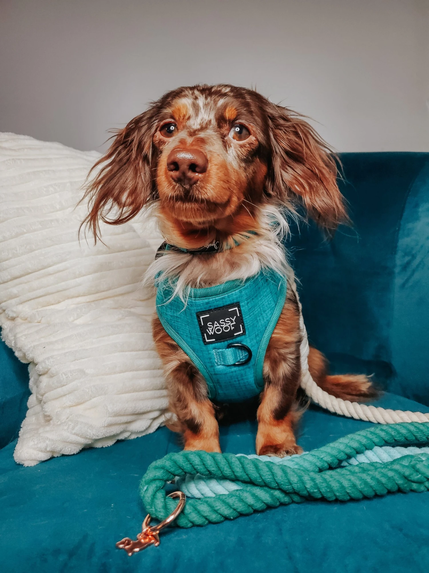 Beautifully hand-crafted, this ombre rope will add a pop of color to any dog’s wardrobe. These blended colors complement well with our matching Sassy Woof harness, collar, and waste bag holder.