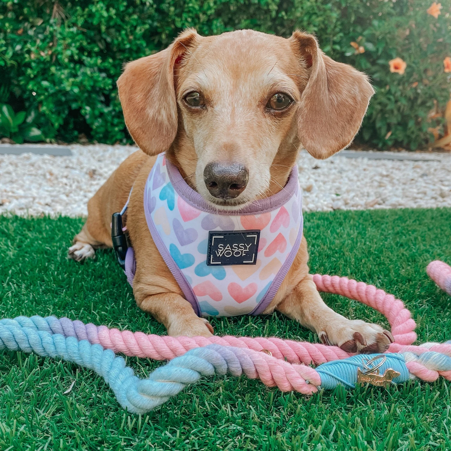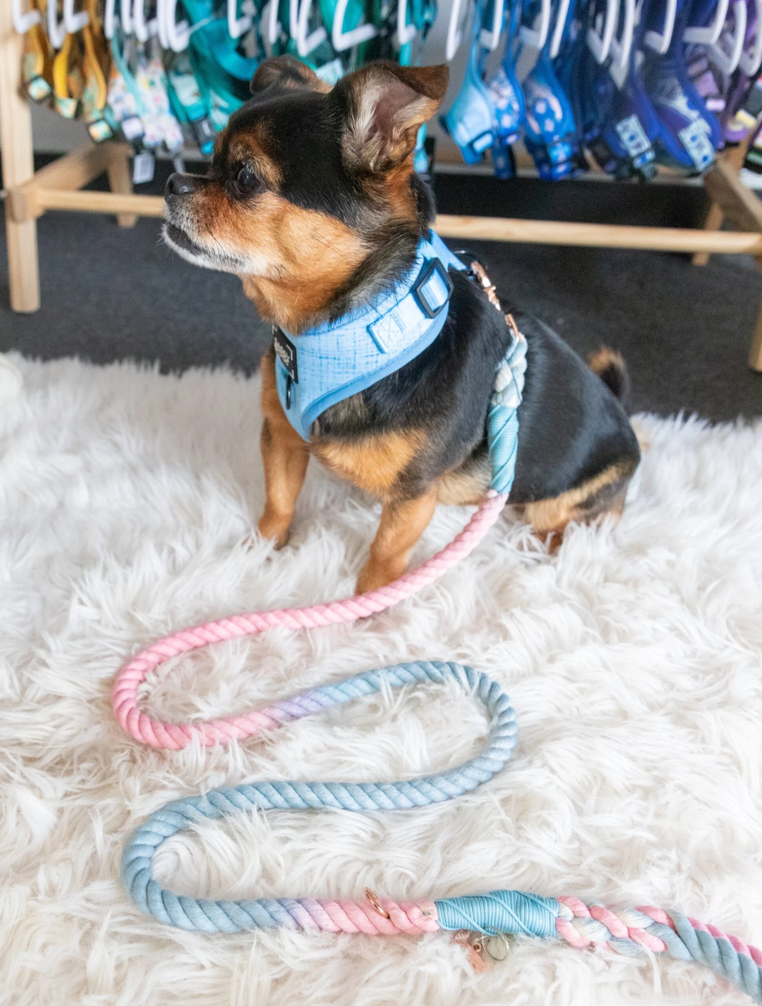 Beautifully hand-crafted, this ombre rope will add a pop of color to any dog’s wardrobe. These blended colors complement well with our matching Sassy Woof harness, collar, and waste bag holder.