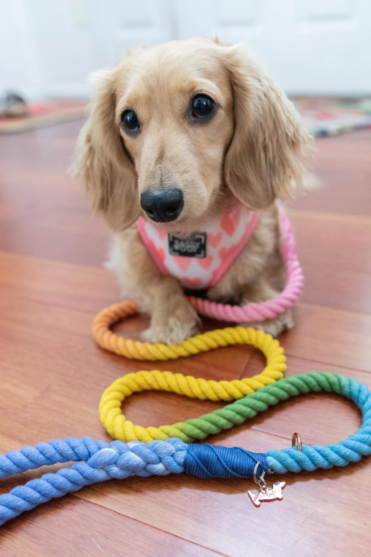 Beautifully hand-crafted, this ombre rope will add a pop of color to any dog’s wardrobe. These blended colors complement well with our matching Sassy Woof harness, collar, and waste bag holder.
