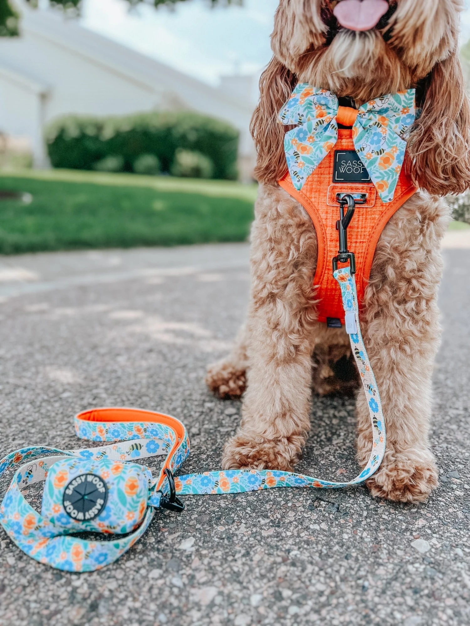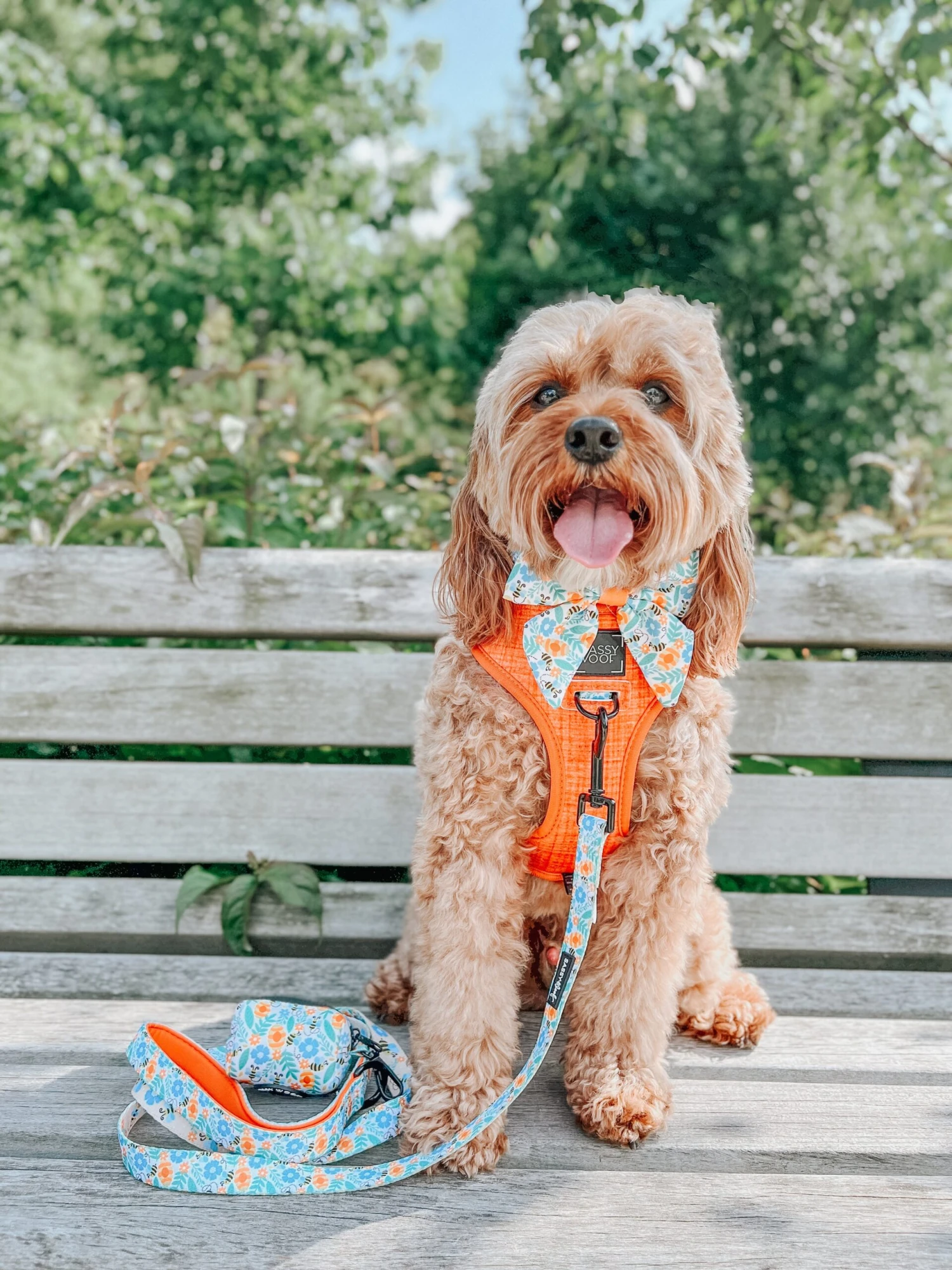- Complete the set with our matching adjustable harness, leash, collar, and waste bag holder!