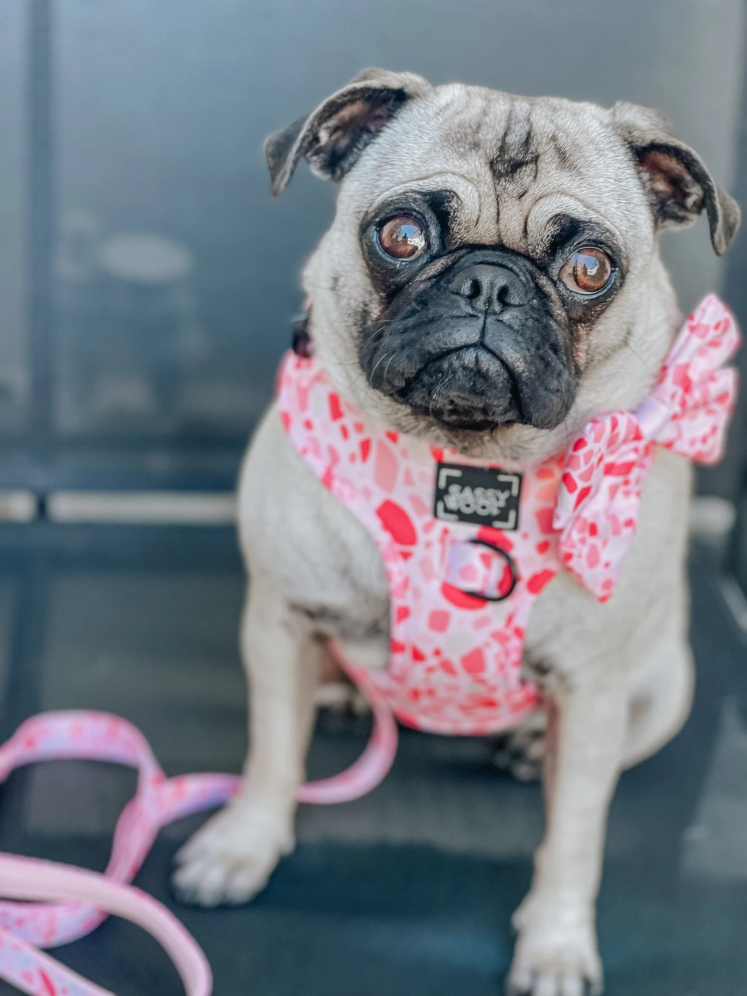 - Complete the set with our matching adjustable harness, leash, collar, and waste bag holder!