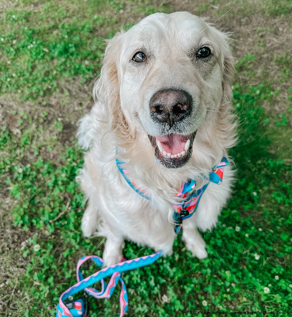 - Complete the set with our matching adjustable harness, leash, waste bag holder, collar, and toy