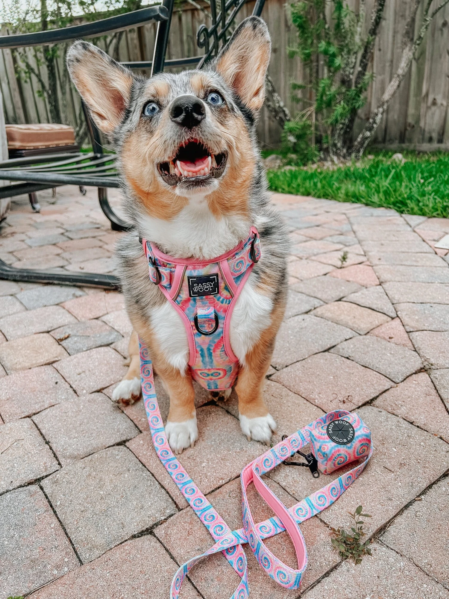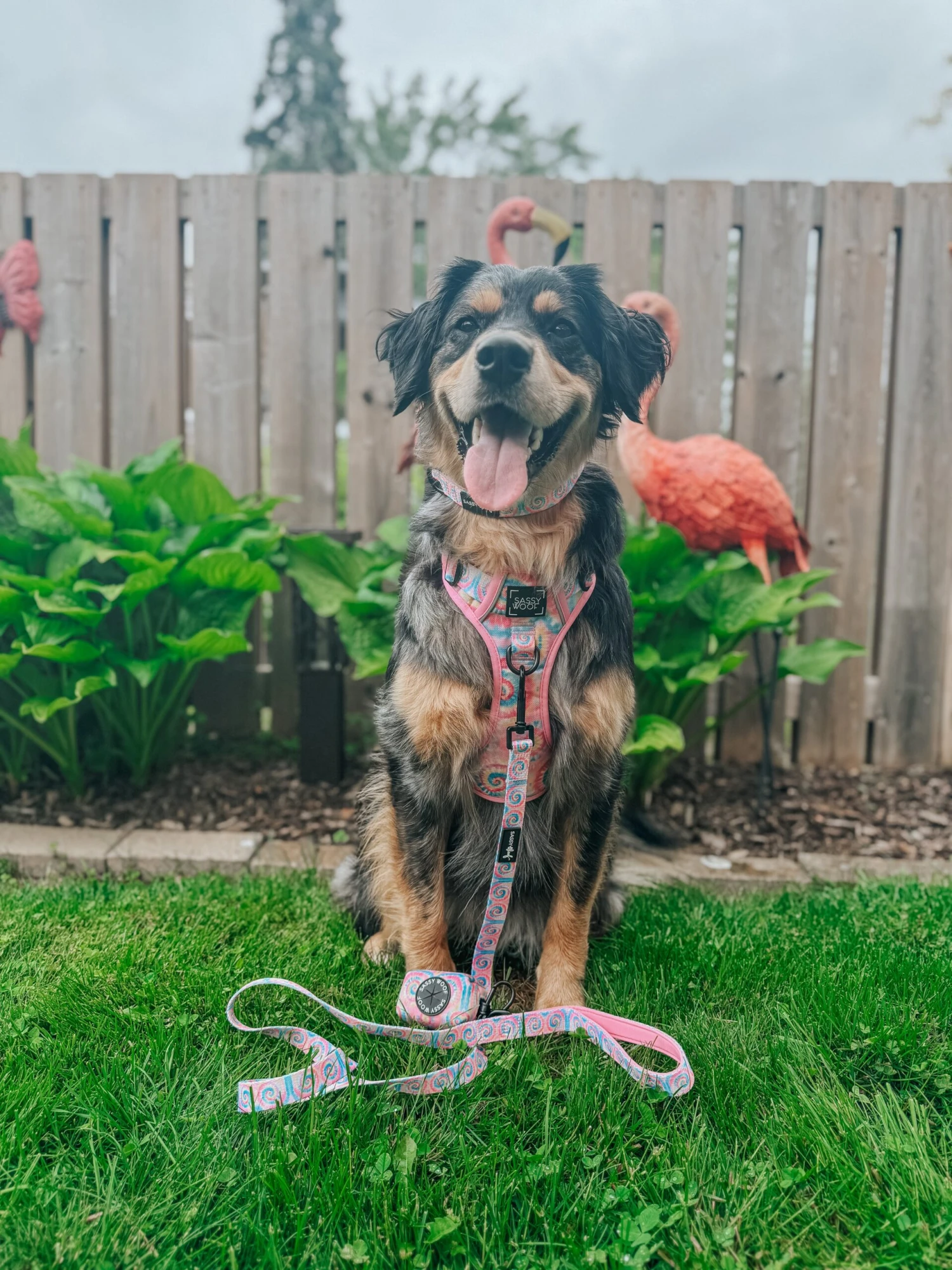 - Pair this harness with our matching collar, leash, waste bag holder, & treat pouch