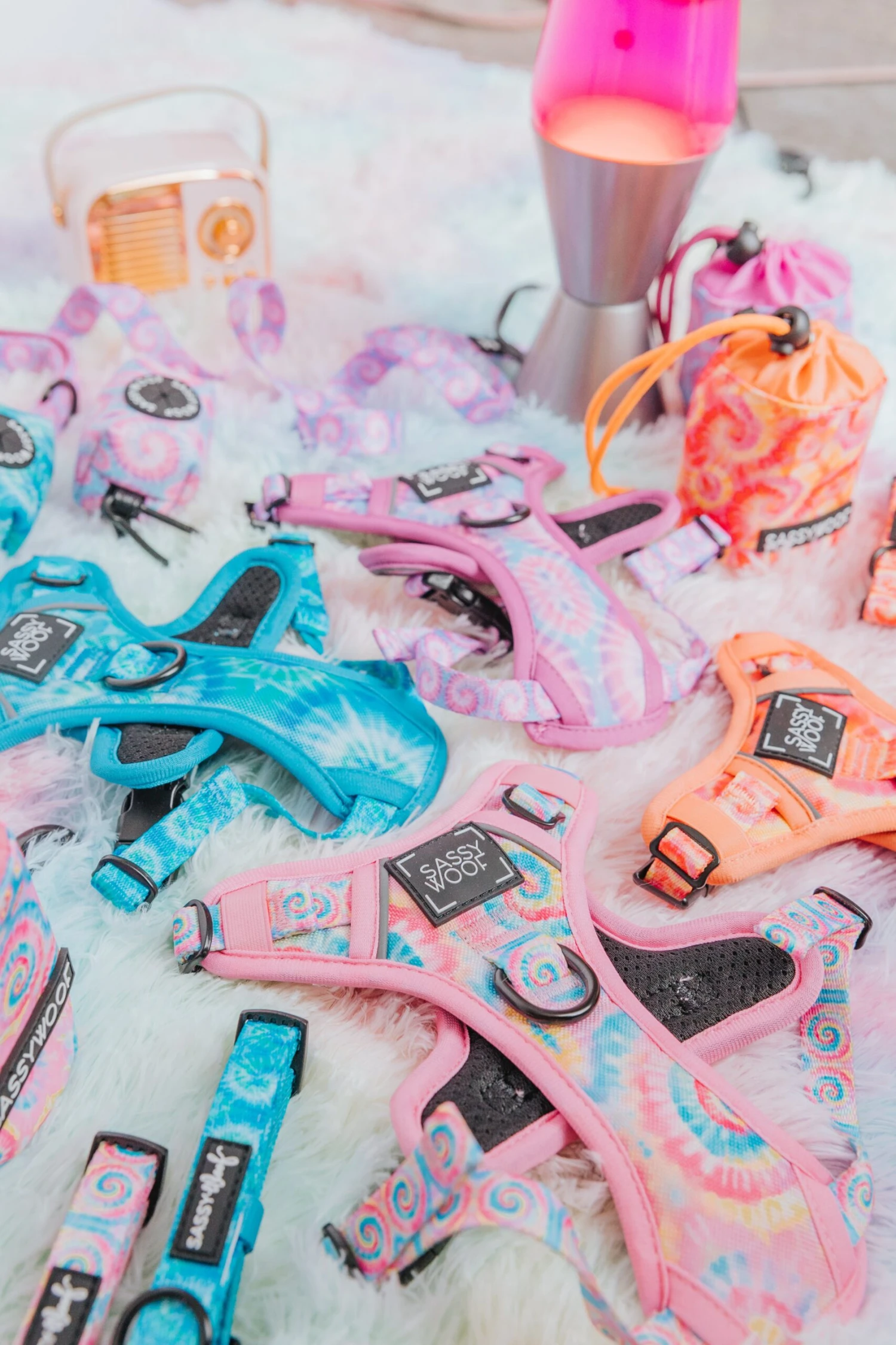 Are you ready to kick back and just have a good time? If yes is the answer, then Good Vibes is pawfect fur you! This gorgeous multicolor tie-dye collection is sure to make your dogs look pop!