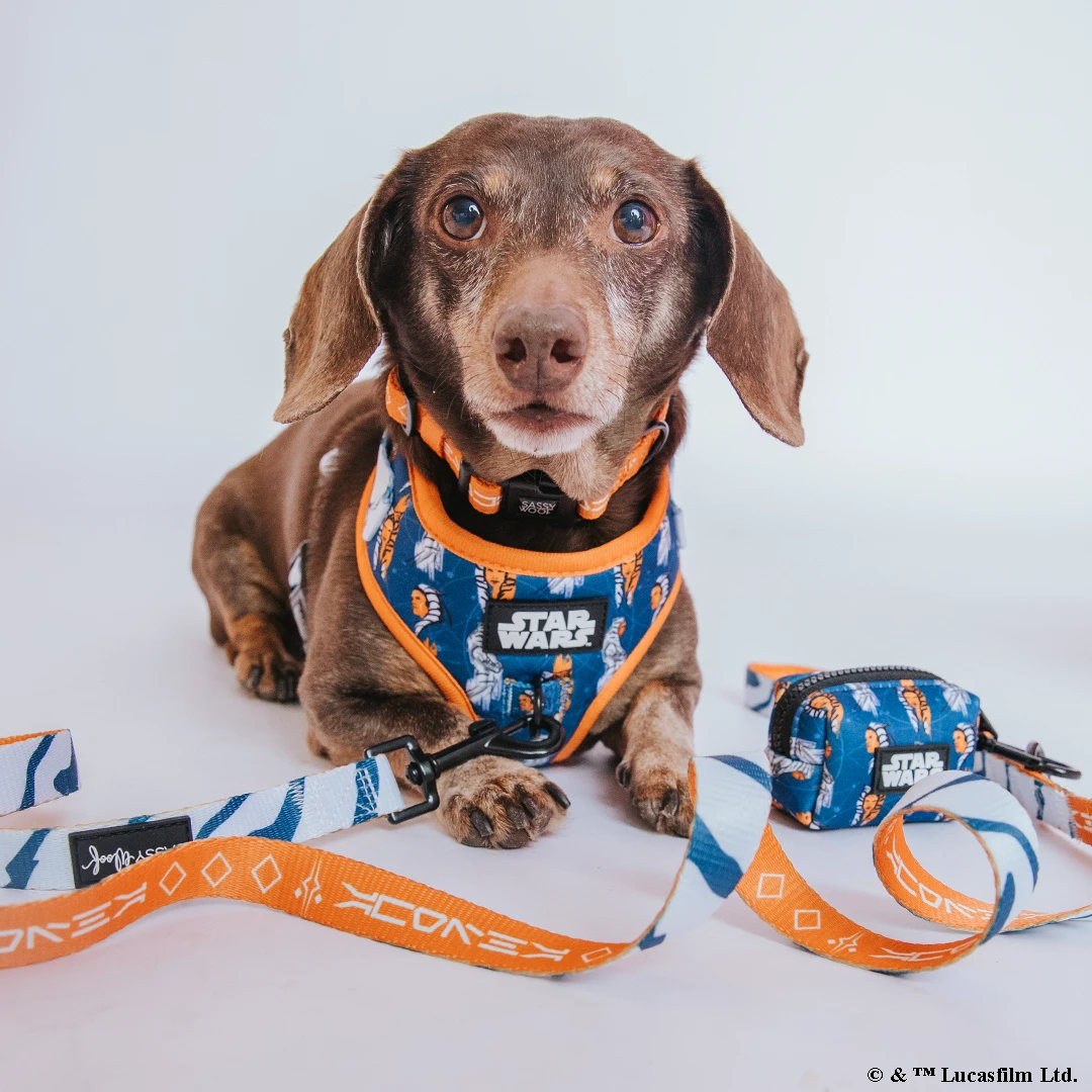 Exploring the galaxy is more fun in style! With our brand new Star Wars Ahsoka patter, your pup can do just that and more!