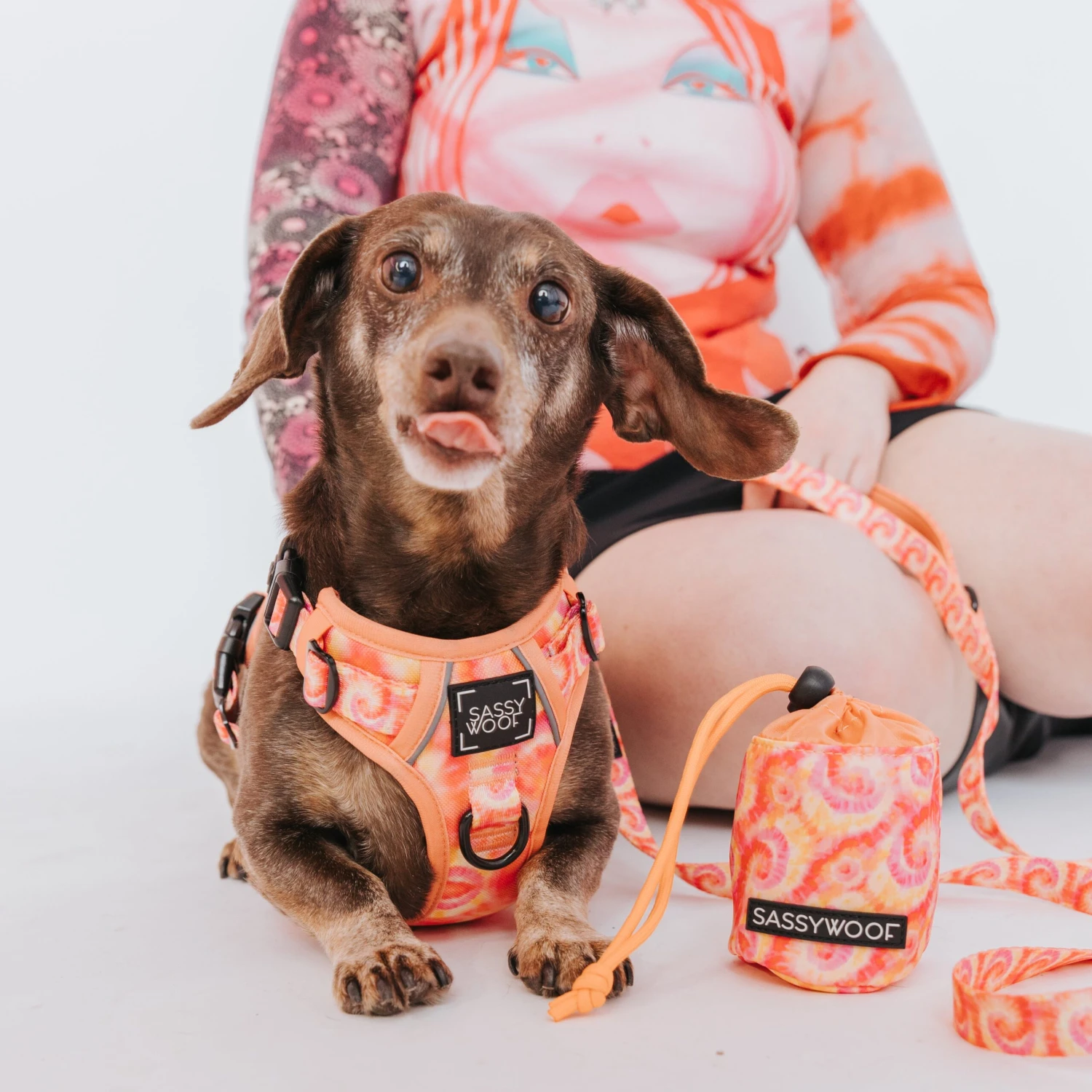 - Complete the set with our matching step-in harness, leash, collar, & waste bag holder