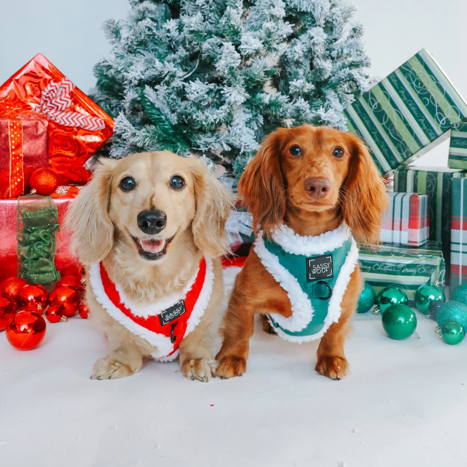 This sherpa harness is an exclusive, so don’t miss out on the pawfect holiday fit!Â