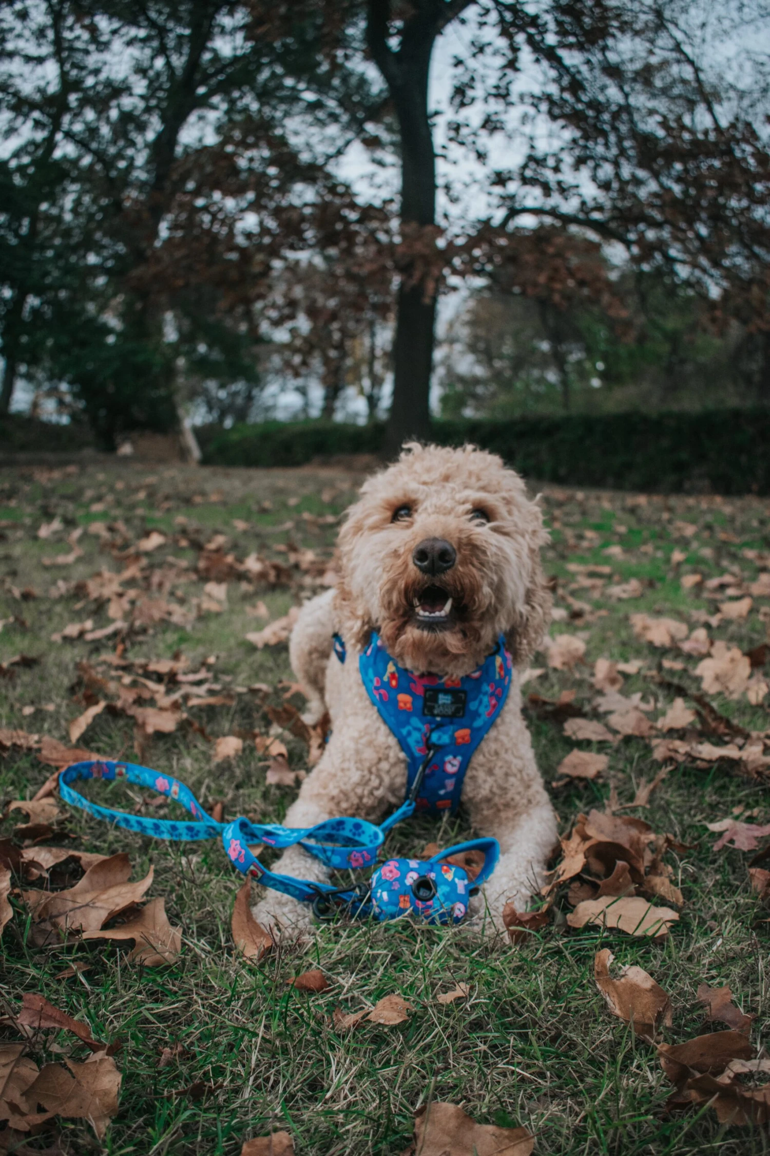 - Complete the set with our matching adjustable harness, leash, and collar