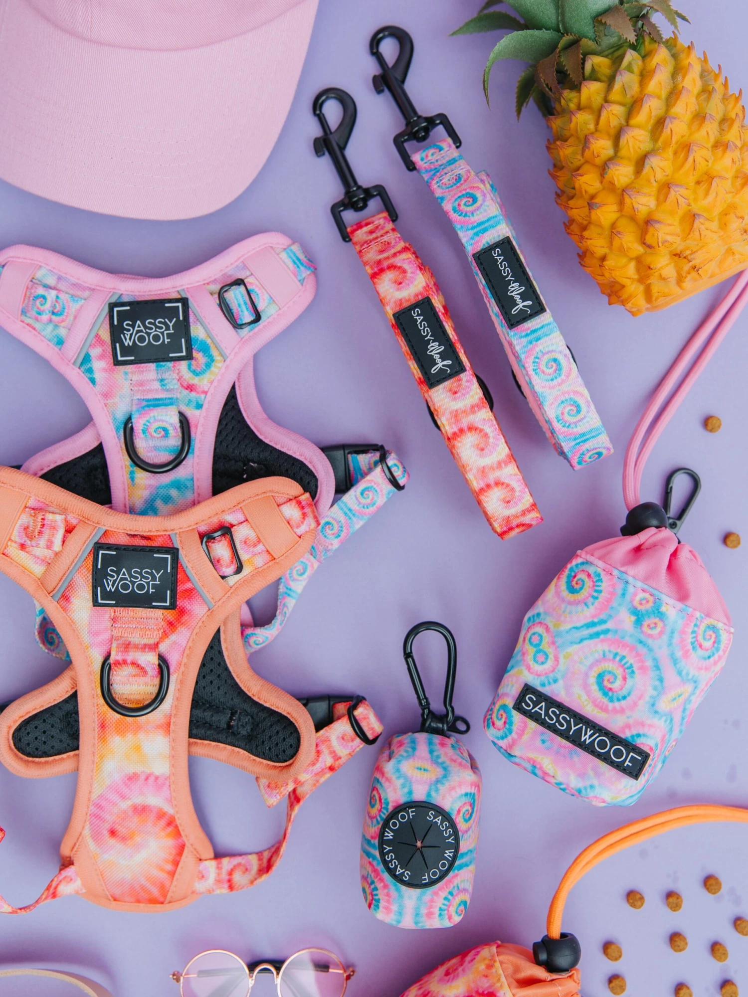 Are you ready to kick back and just have a good time? If yes is the answer, then Good Vibes is pawfect fur you! This gorgeous multicolor tie-dye collection is sure to make your dogs look pop!