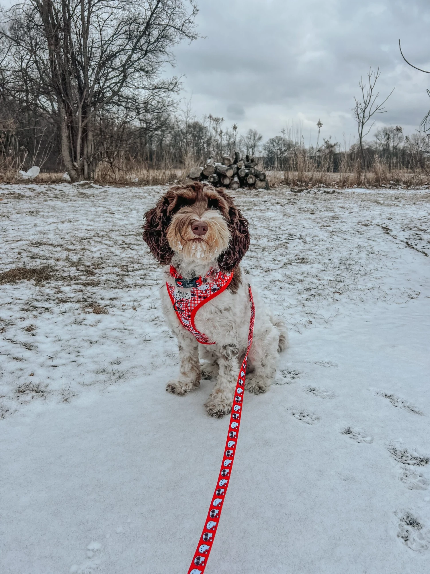 - Complete the set with our matching adjustable harness, leash, collar & sailor bow!
