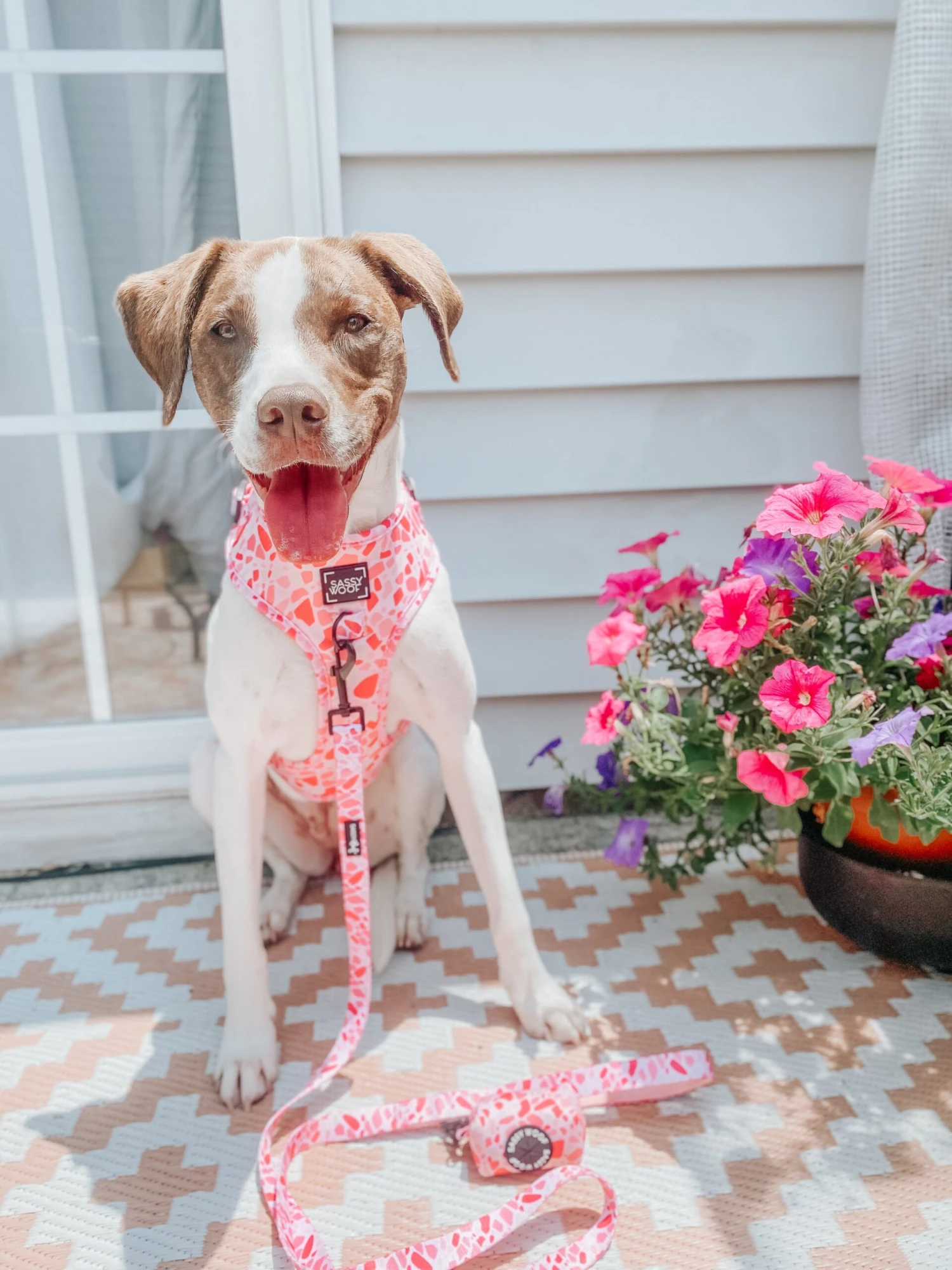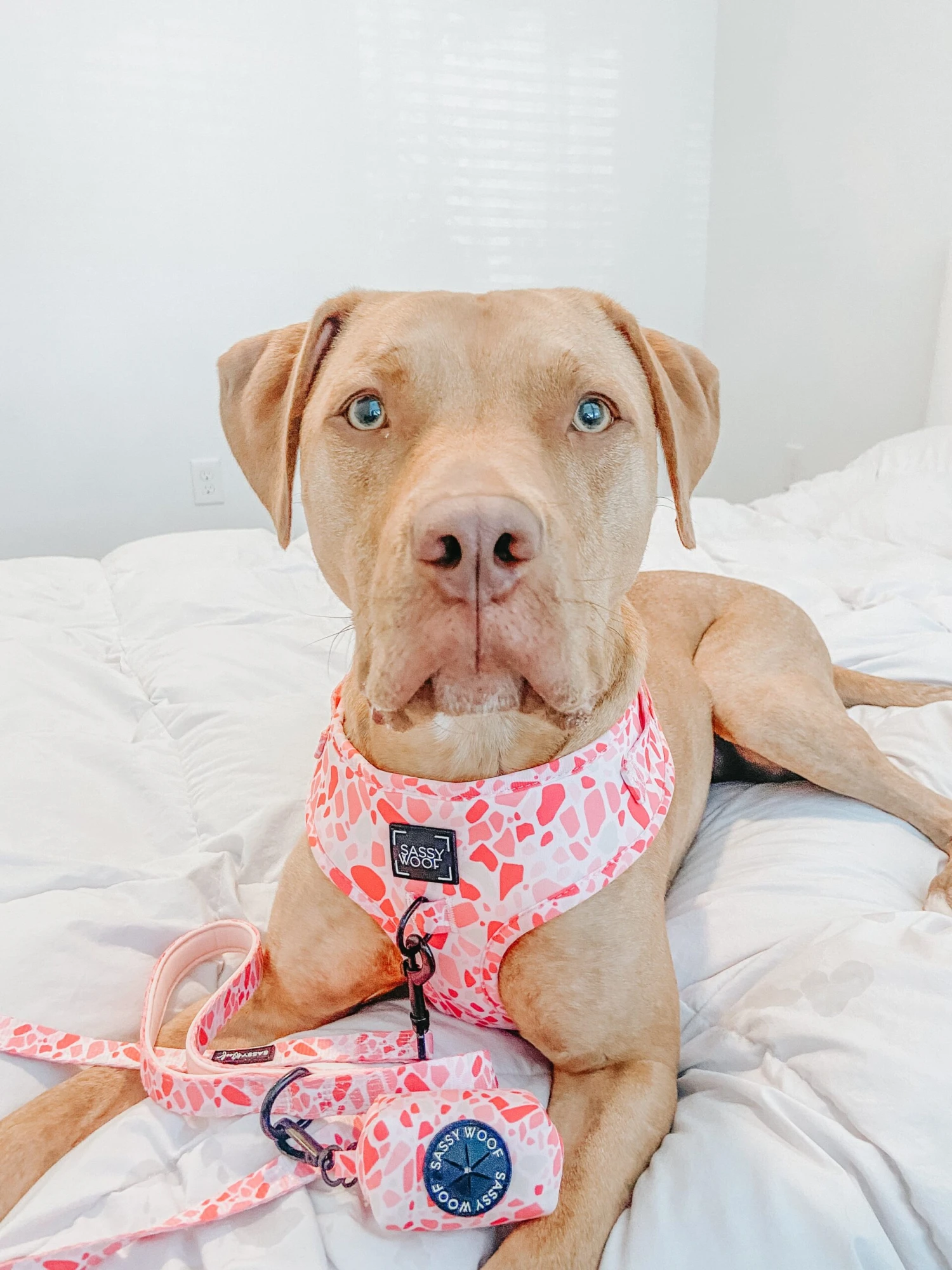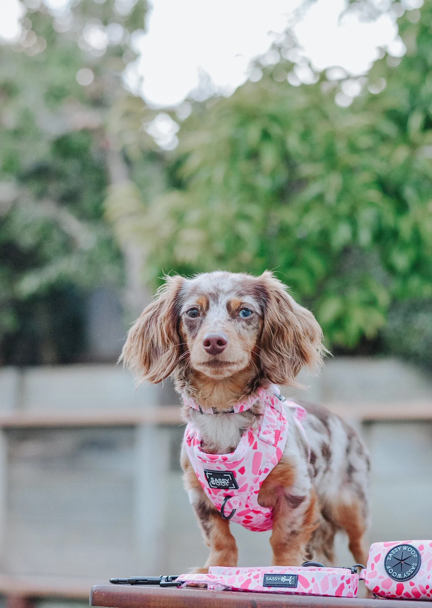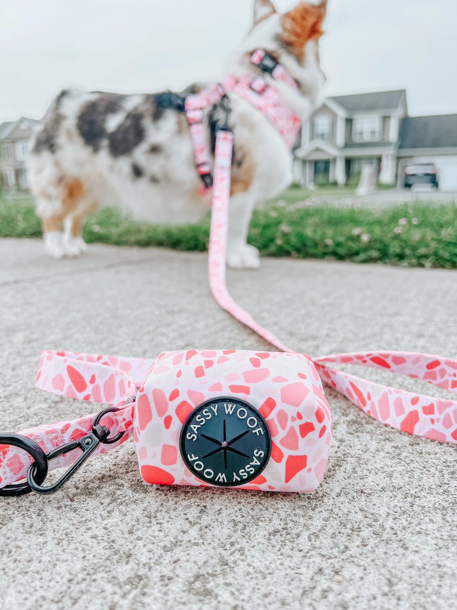 - Complete the set with our matching adjustable harness, leash, collar, and bowtie!