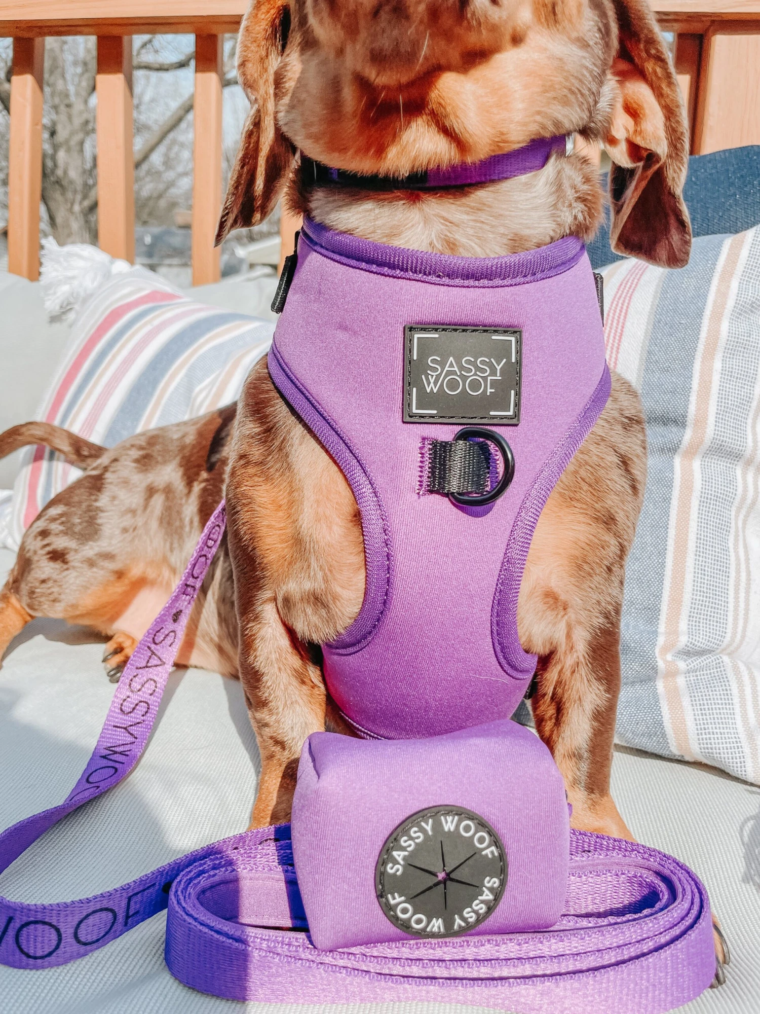 - Complete the set with our matching adjustable harness, leash, and collar!