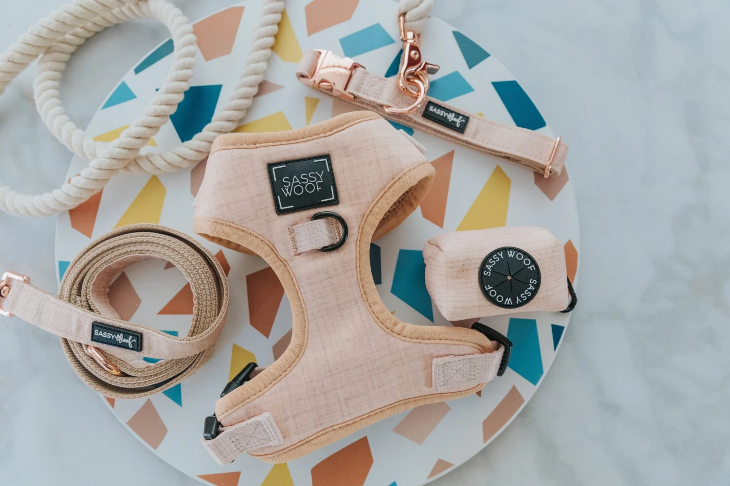 Who doesn’t love a good neutral look? We do! This beige collection is the perfect shade of tan for a minimalist look. This is definitely a classy look for any pup. Feel free to mix in coins, your key, or some extra treats on your walk.