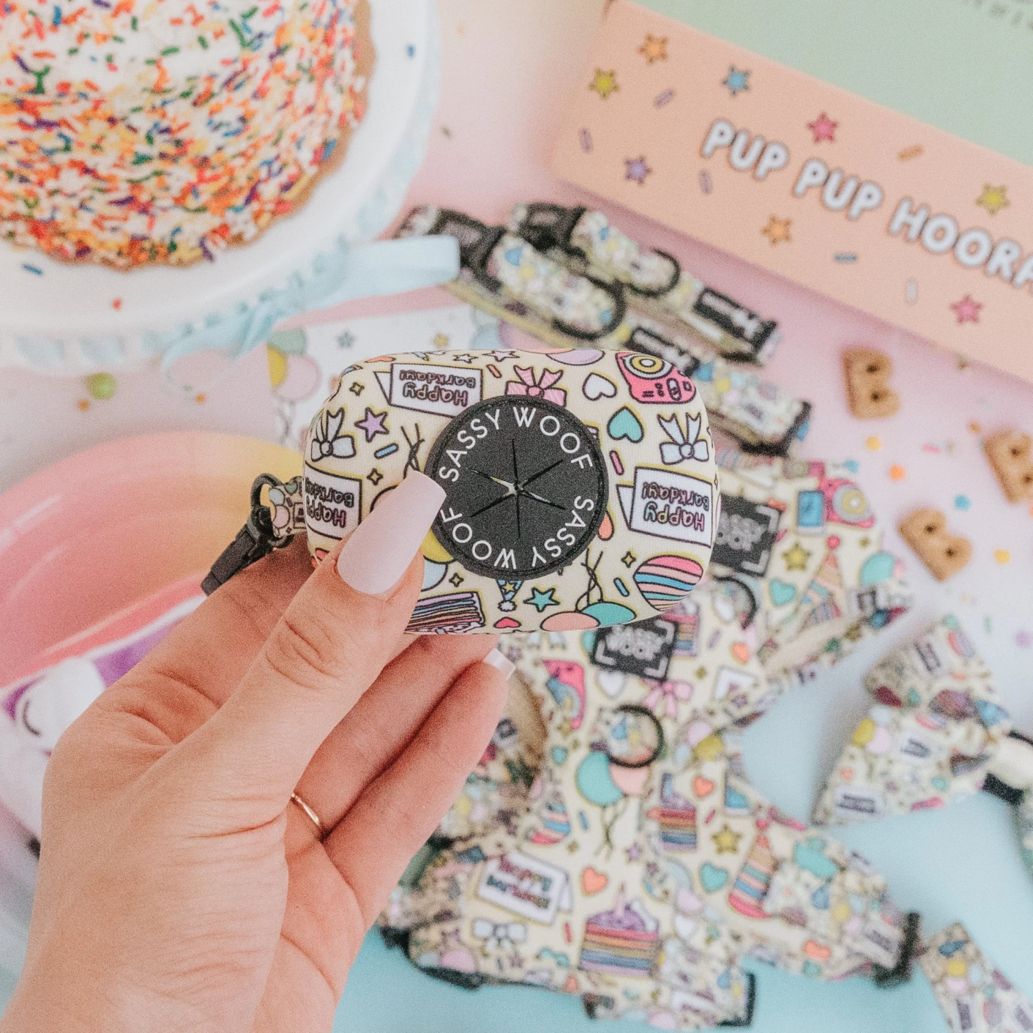 Raise the Woof! Fun & vibrant, this waste bag holder is pawfect for your special day and all the pawties you’re invited to!