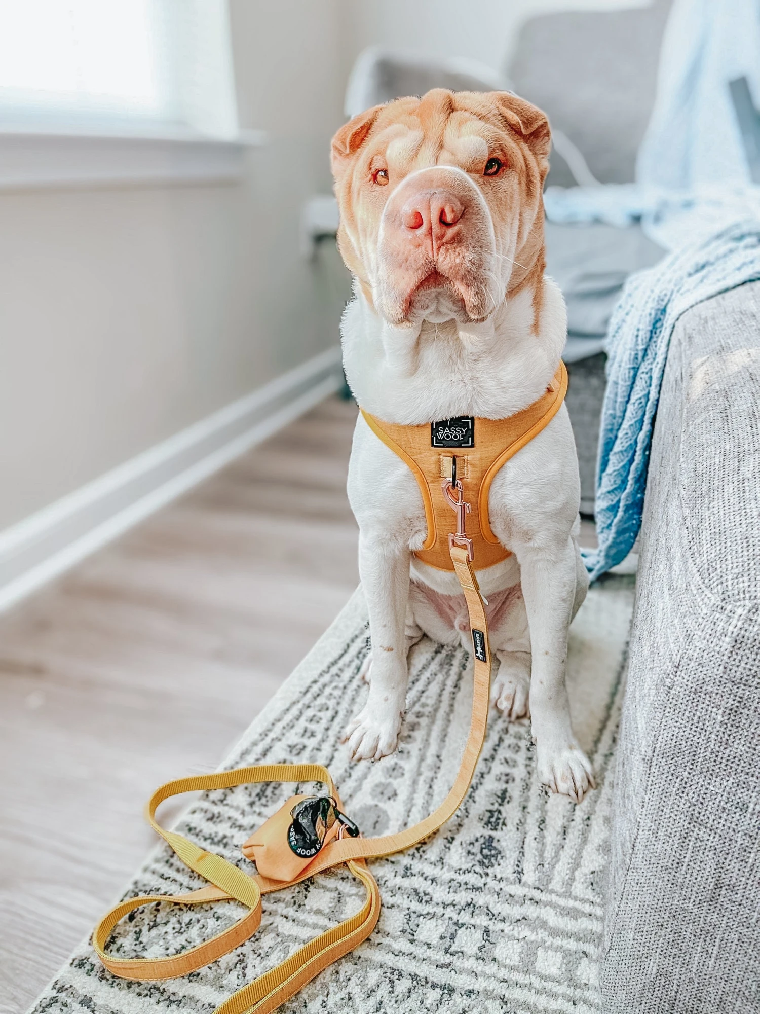 - Complete the set with our matching adjustable harness, bowtie, leash, and collar!