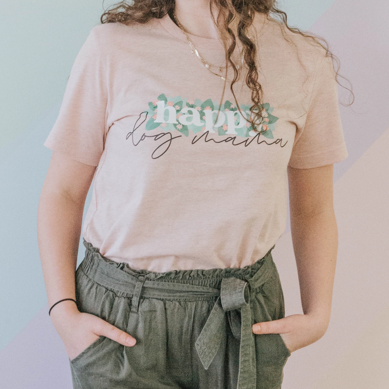 We know that dogs are the source of true happiness. Show off your dog mama pride in this tee! These shirts are comfortable and lightweight for all day wear.