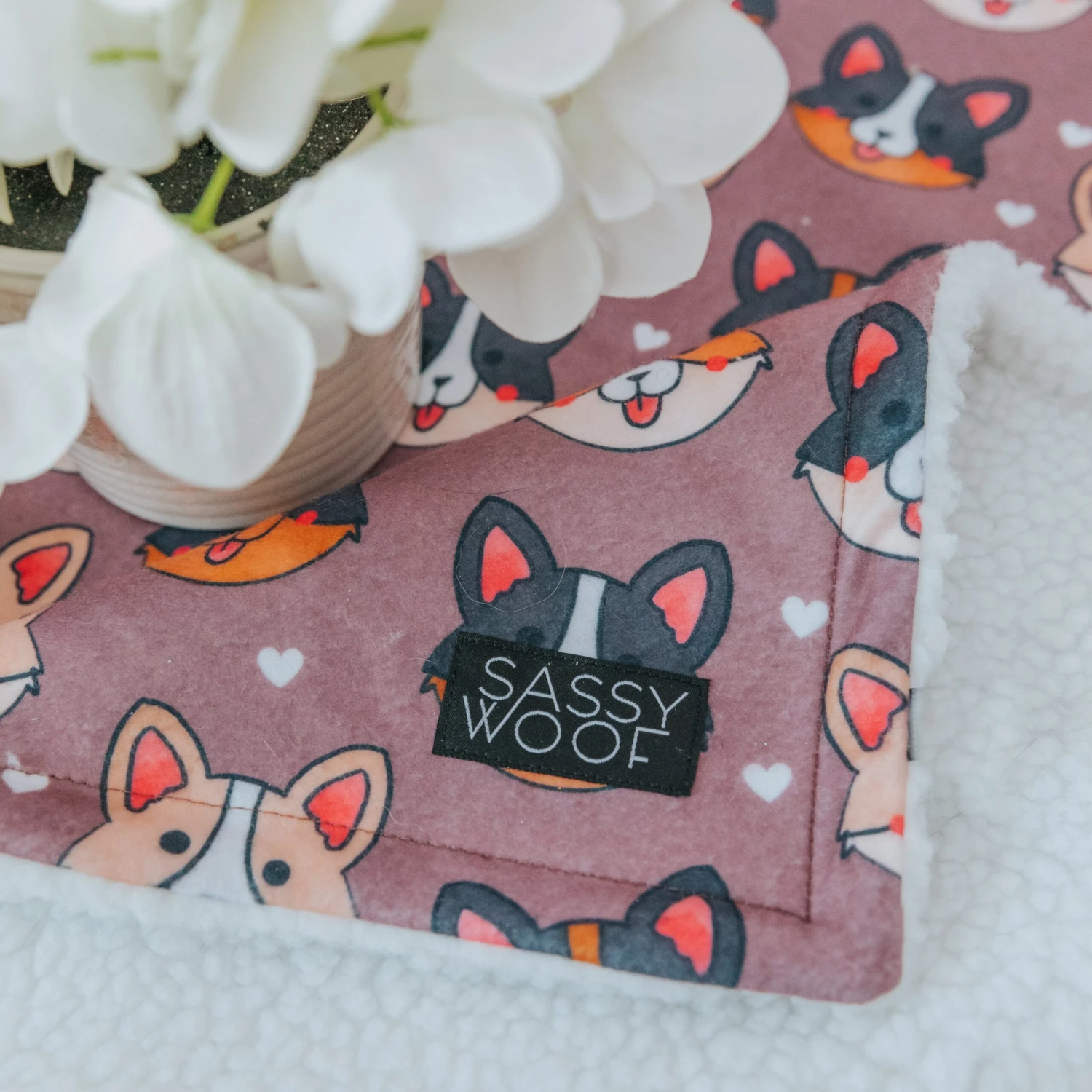 This sherpa blanket is pawfect fur snuggling on top of, or under! Made with a warm sherpa underside and a patterned microfiber top.Ā