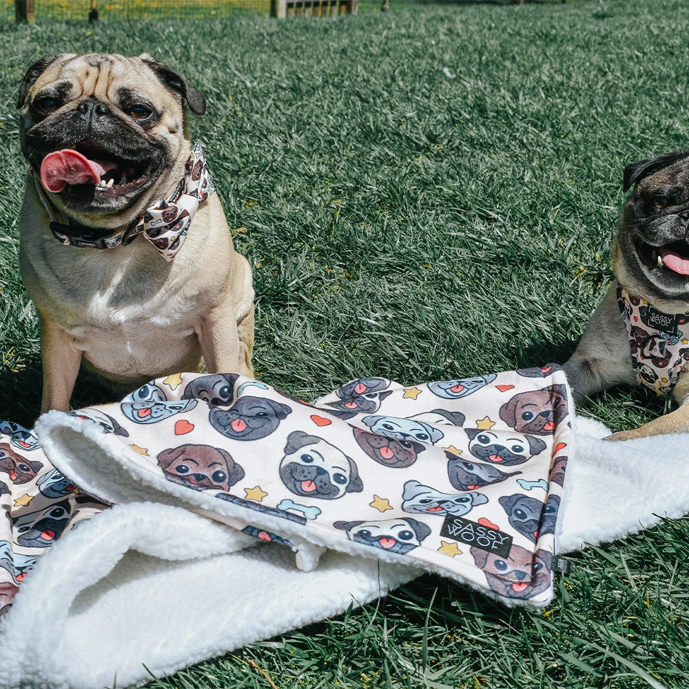 This sherpa blanket is pawfect fur snuggling on top of, or under! Made with a warm sherpa underside and a patterned microfiber top.