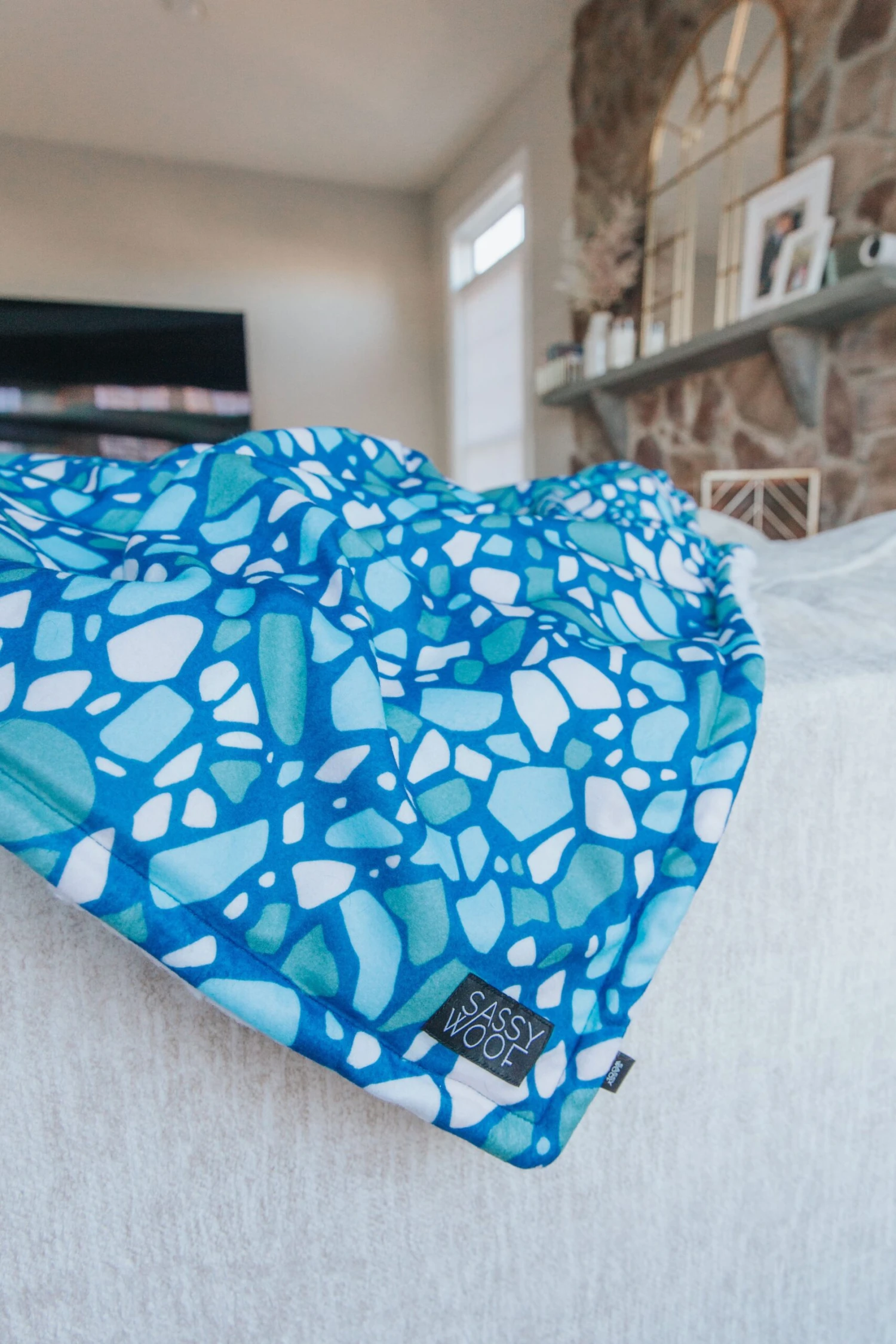 This sherpa blanket is pawfect fur snuggling on top of, or under! Made with a warm sherpa underside and a patterned microfiber top.