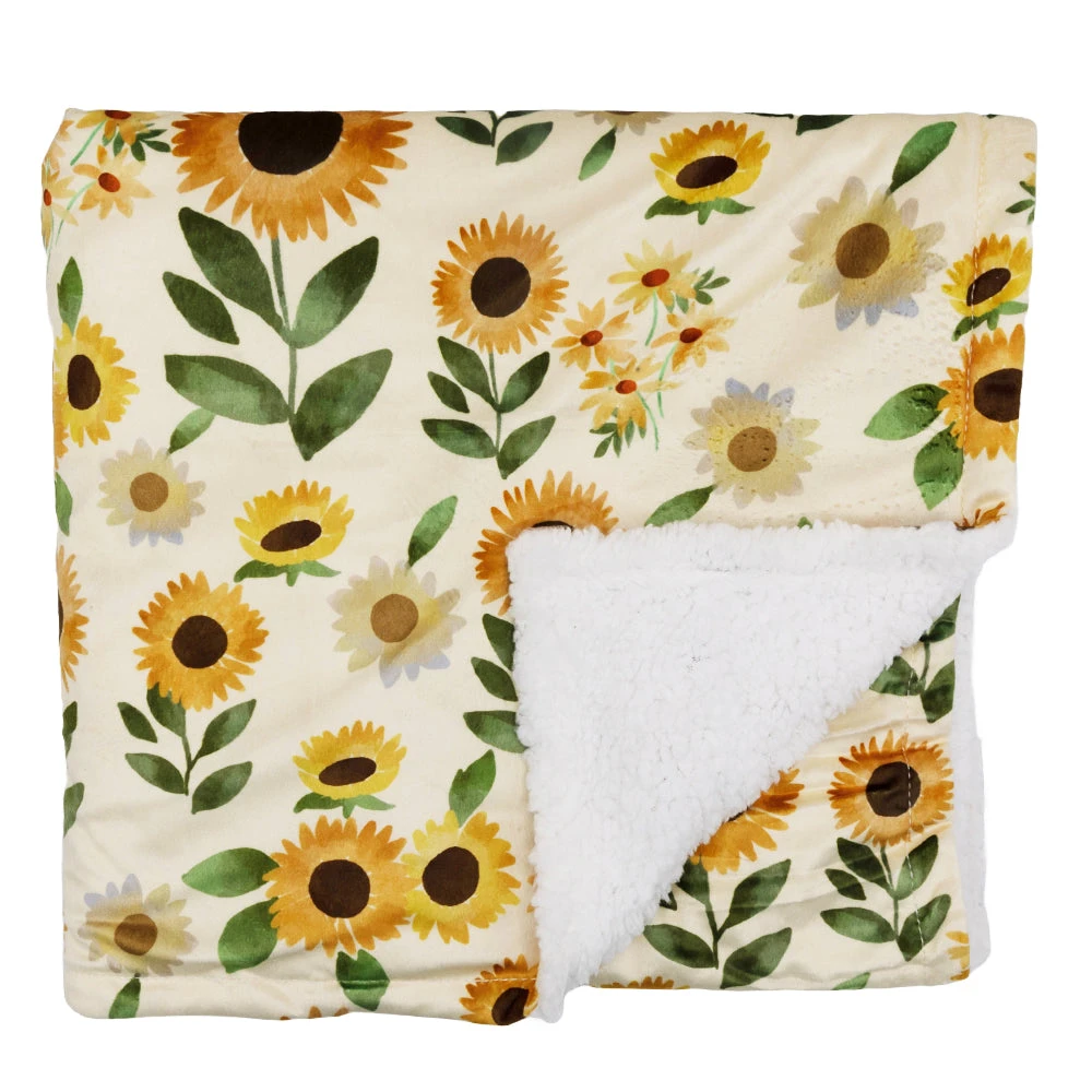 Fur your adventurous pups that love to stop and smell the flowers! This sherpa blanket is pawfect fur snuggling on top of, or under! Made with a warm sherpa underside and a patterned microfiber top.