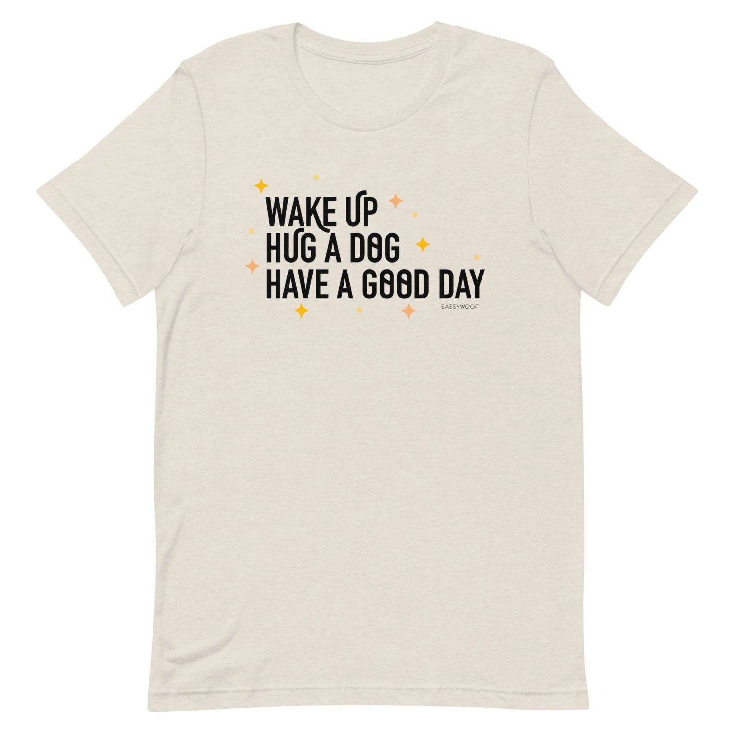 Your to-do list: wake up, hug a dog, have a good day. These shirts are comfortable and lightweight for all day wear.
